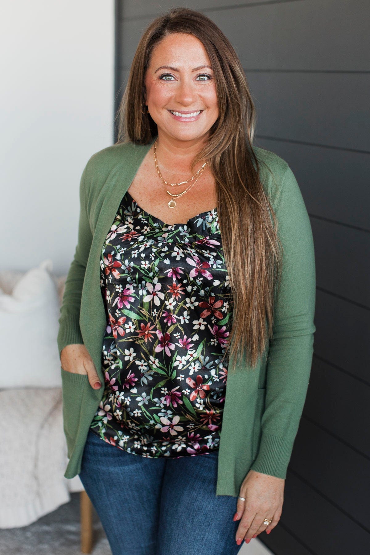 Any Time Now Knit Cardigan- Kale