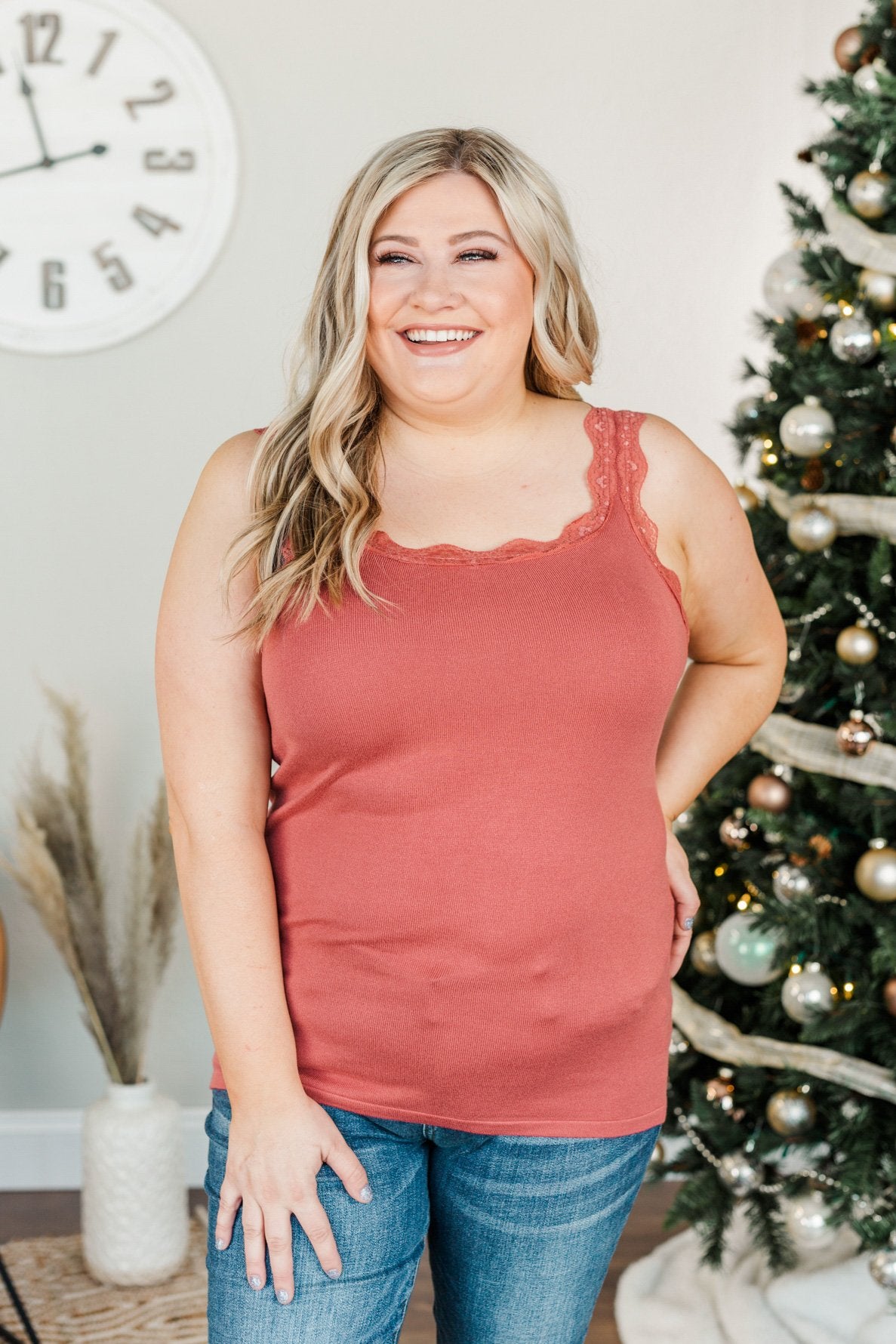 Sweet & Simple Lace Trimmed Tank Top- Marsala