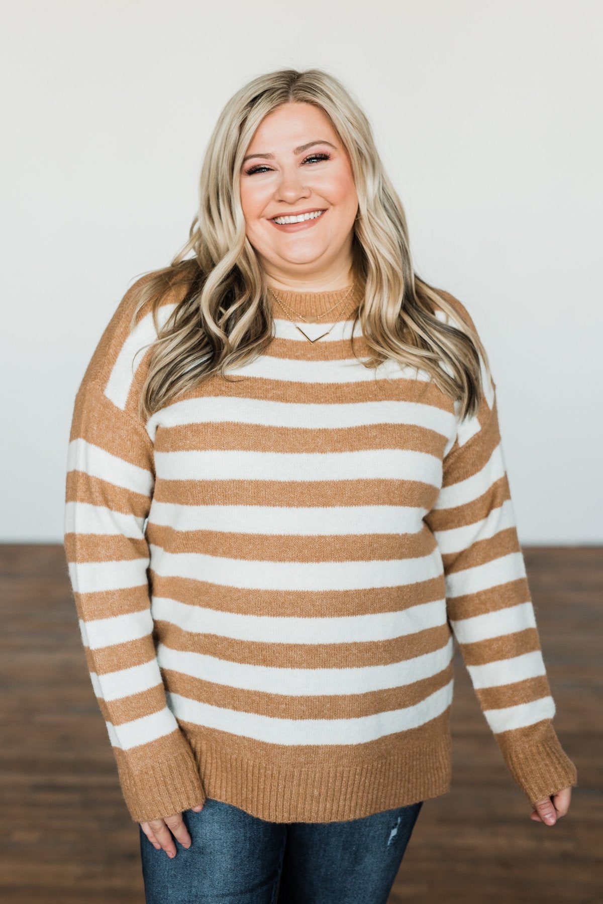 Living The Lifestyle Striped Sweater- Ivory & Camel