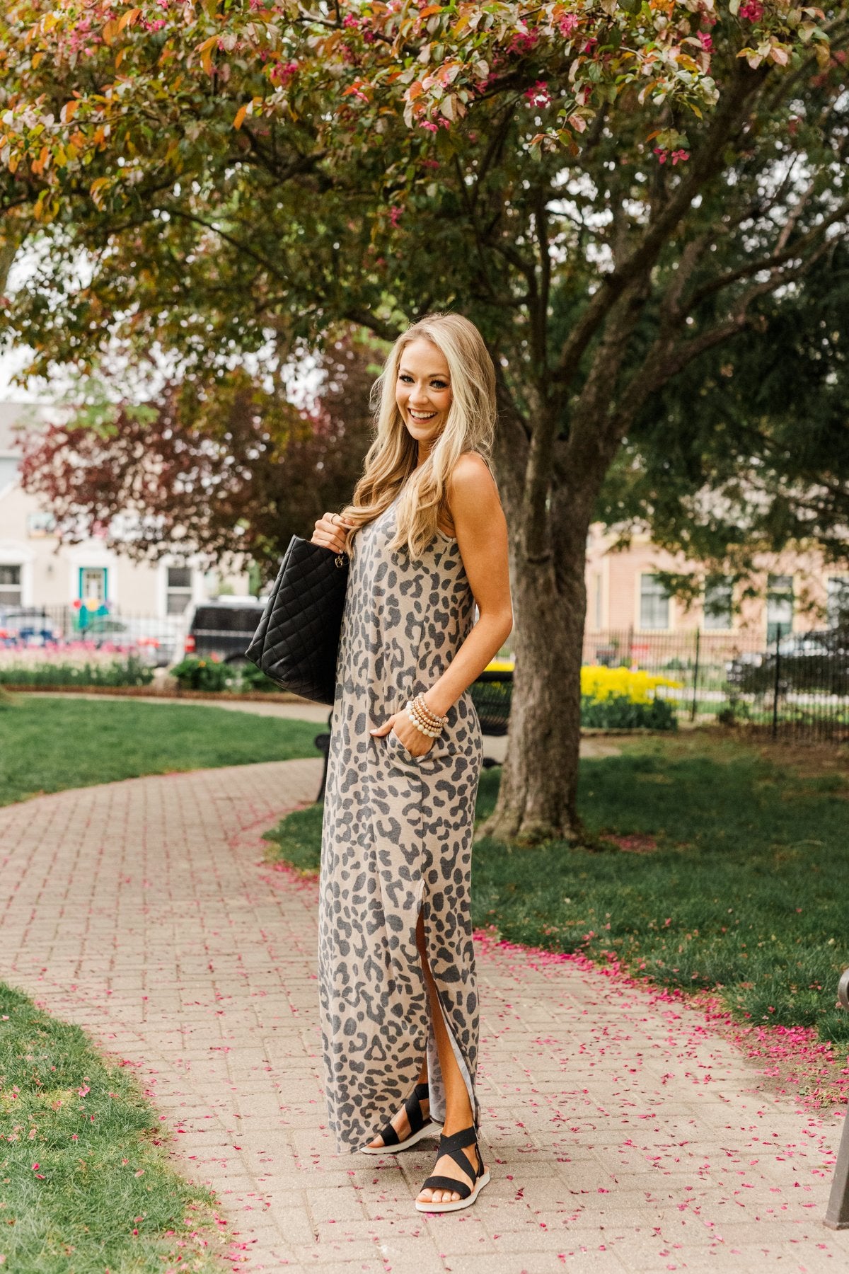 Be The Change Sleeveless Maxi Dress- Charcoal & Ivory
