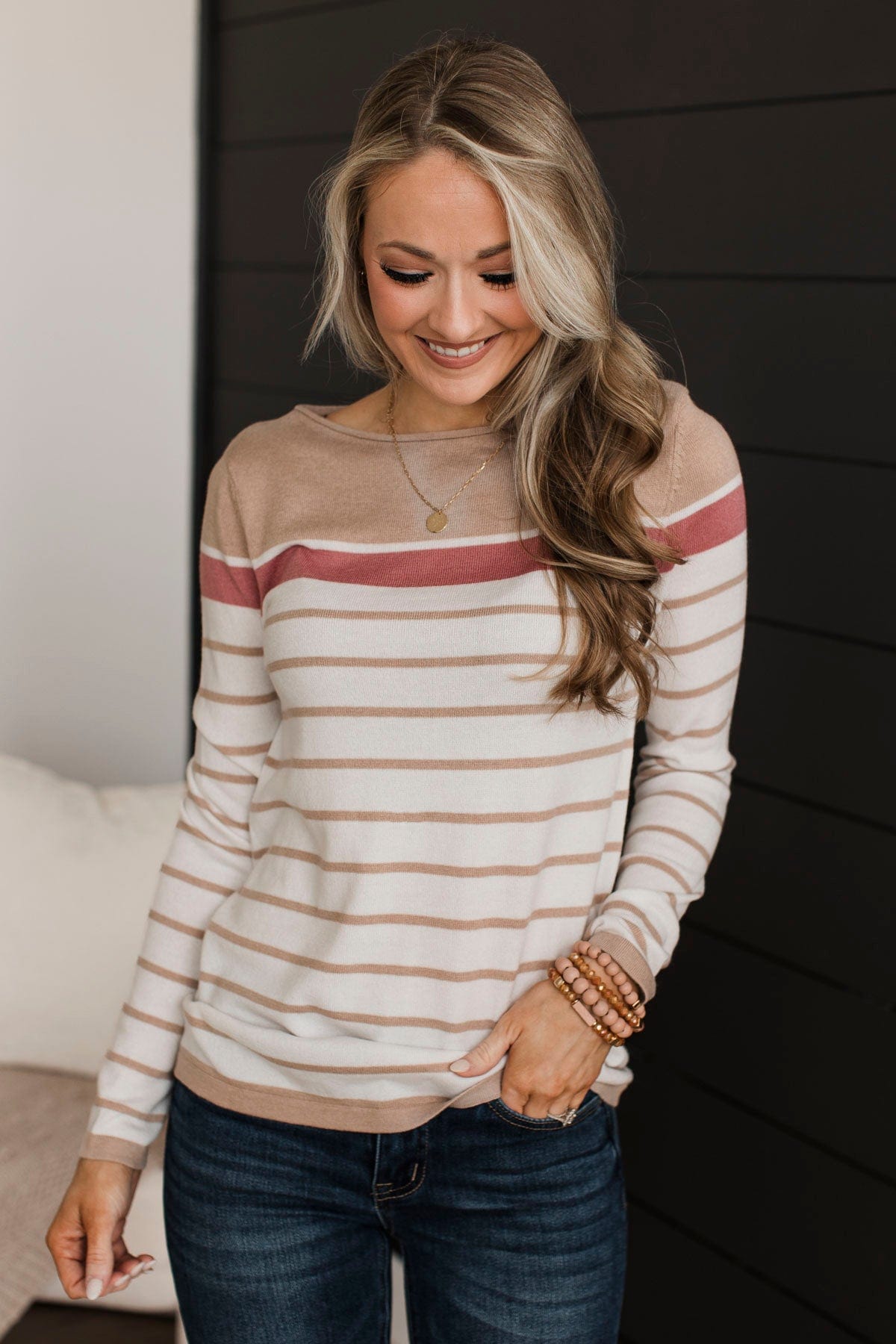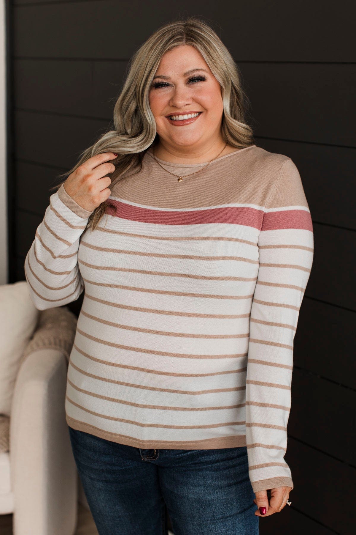 Can't Stay Away Striped Sweater- Taupe & Rose