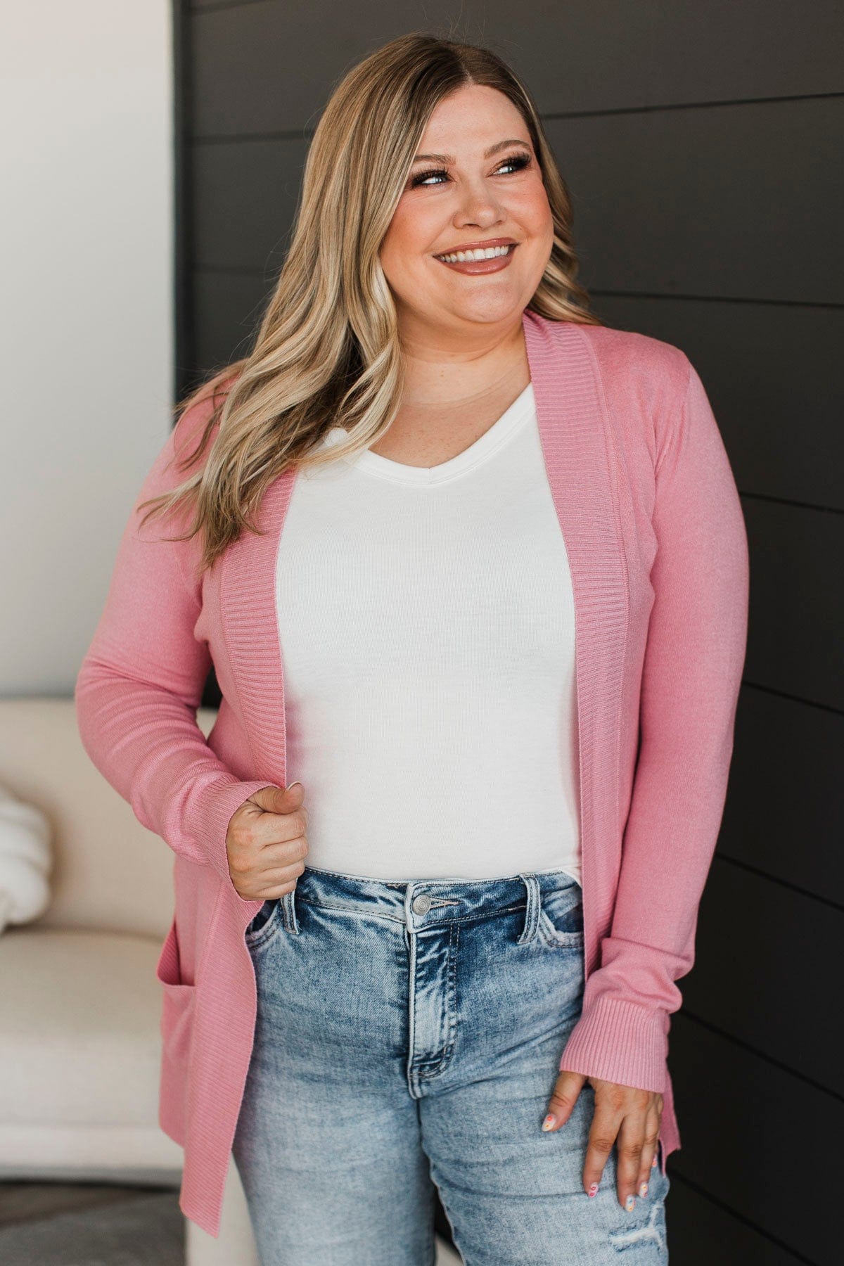 Comfortable With Myself Knit Cardigan- Baby Pink