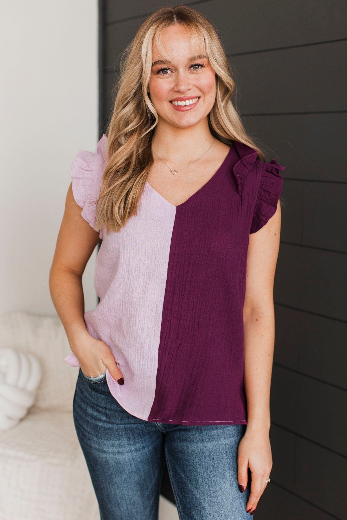 Start Of Forever Ruffle Top- Lilac & Plum