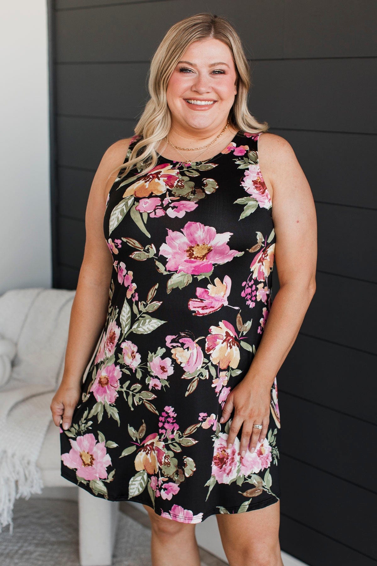 Leave Them Wondering Floral Dress- Black