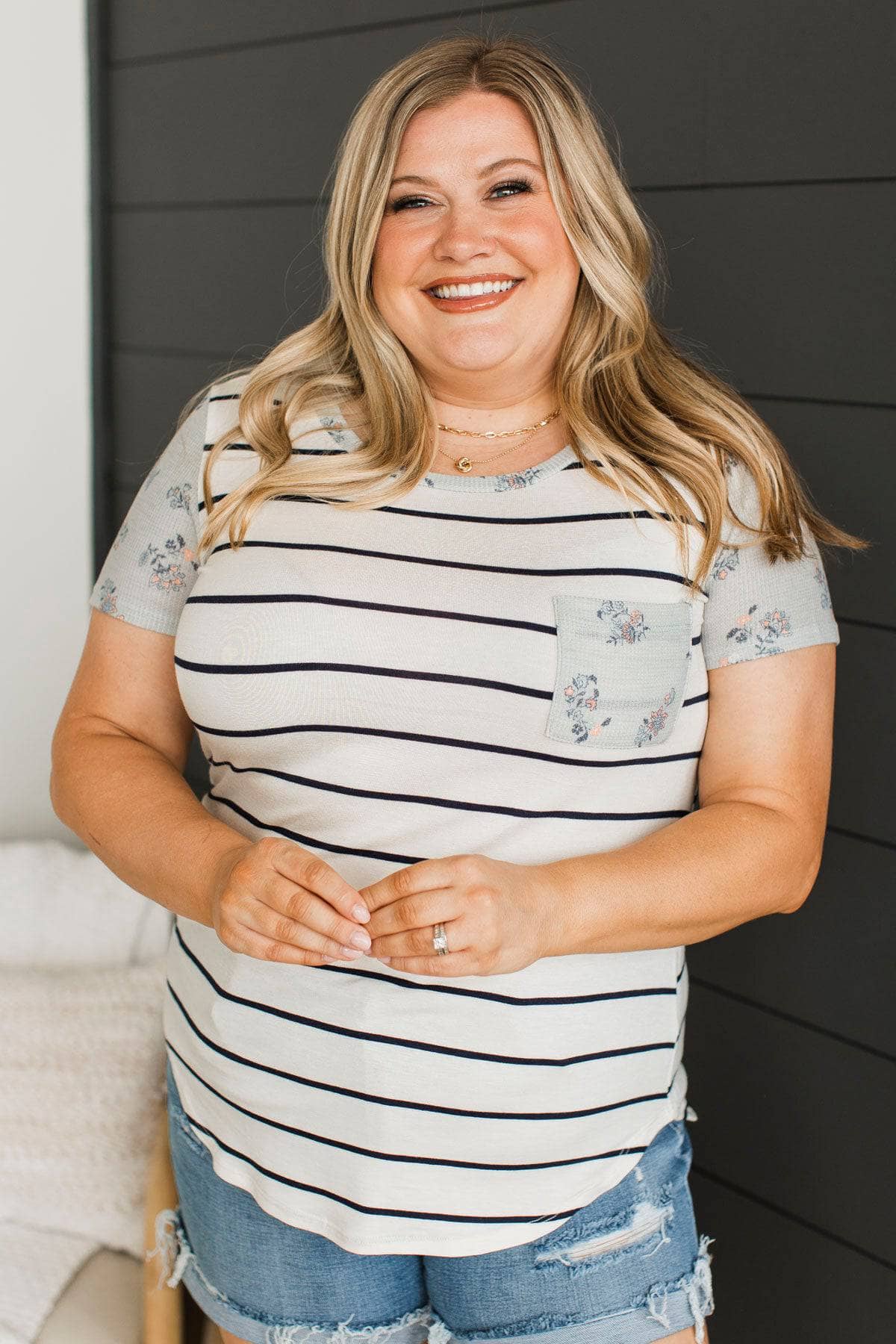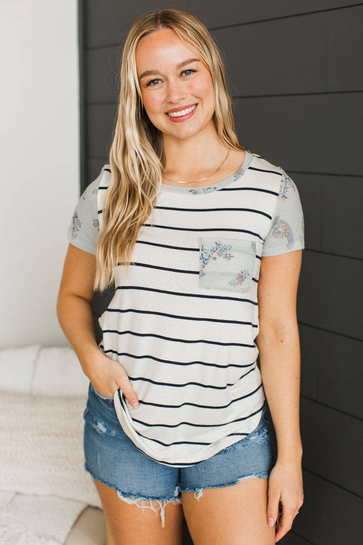 Standing Together Striped Pocket Top- Ivory & Navy
