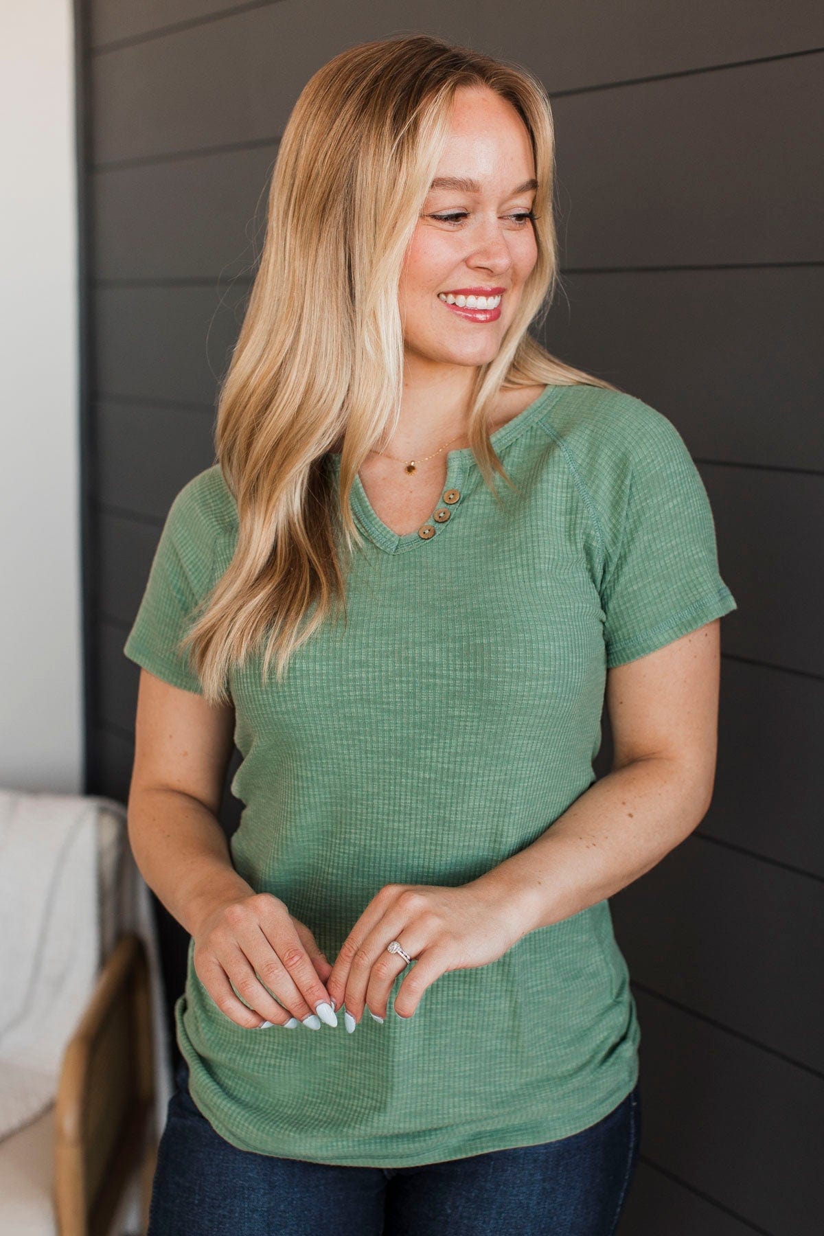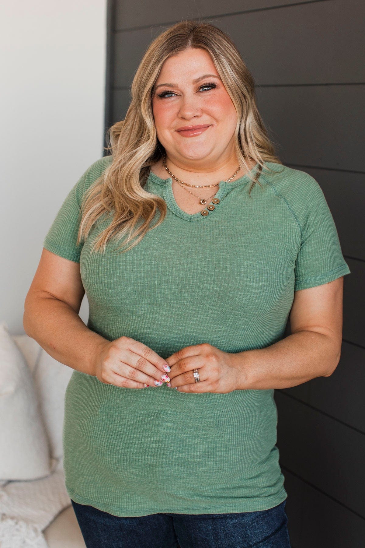 Word Around Town Knit Top- Sage