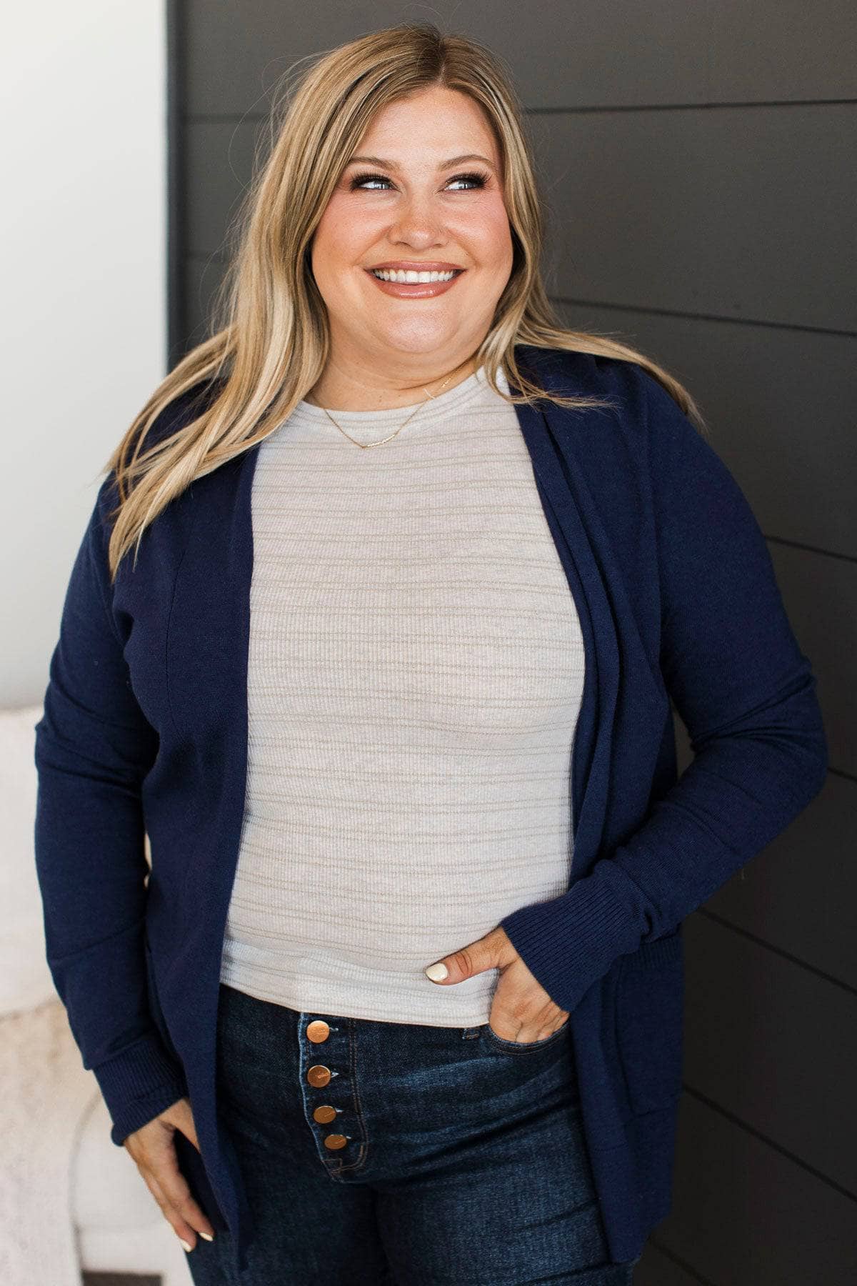 Time To Be Alive Drape Cardigan- Navy