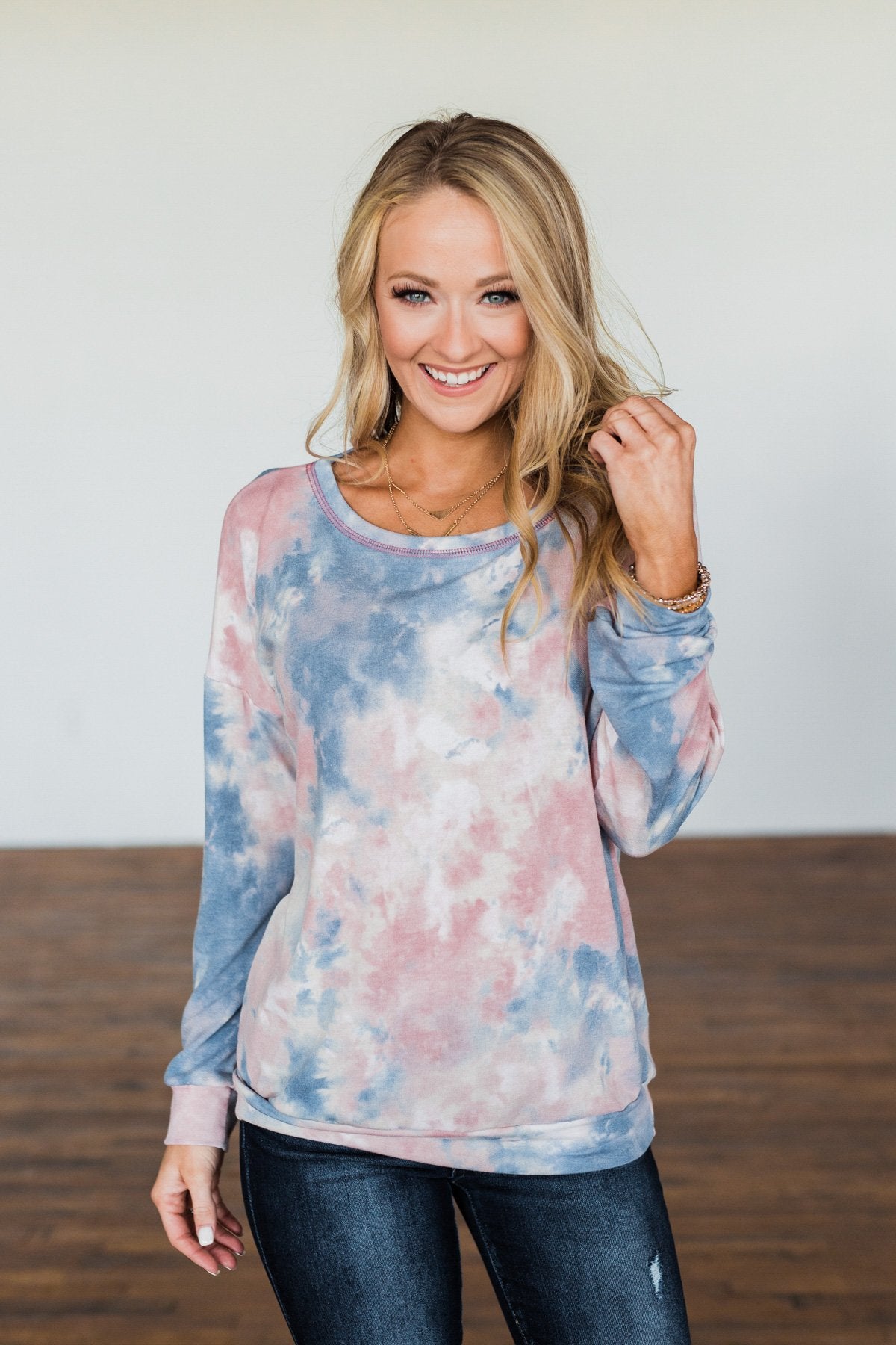 Lost In This Moment Tie Dye Pullover Top- Pink, Blue, Ivory