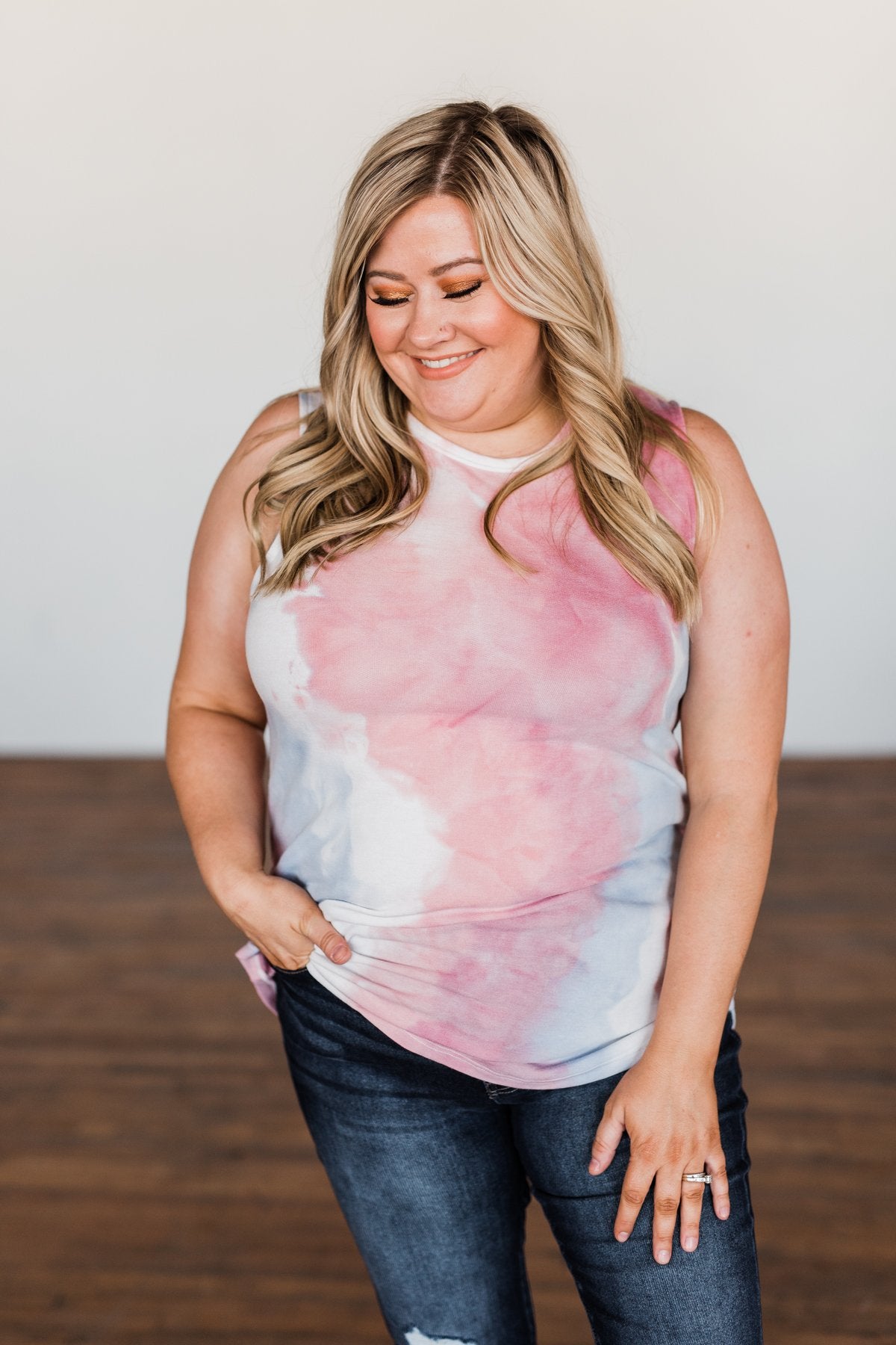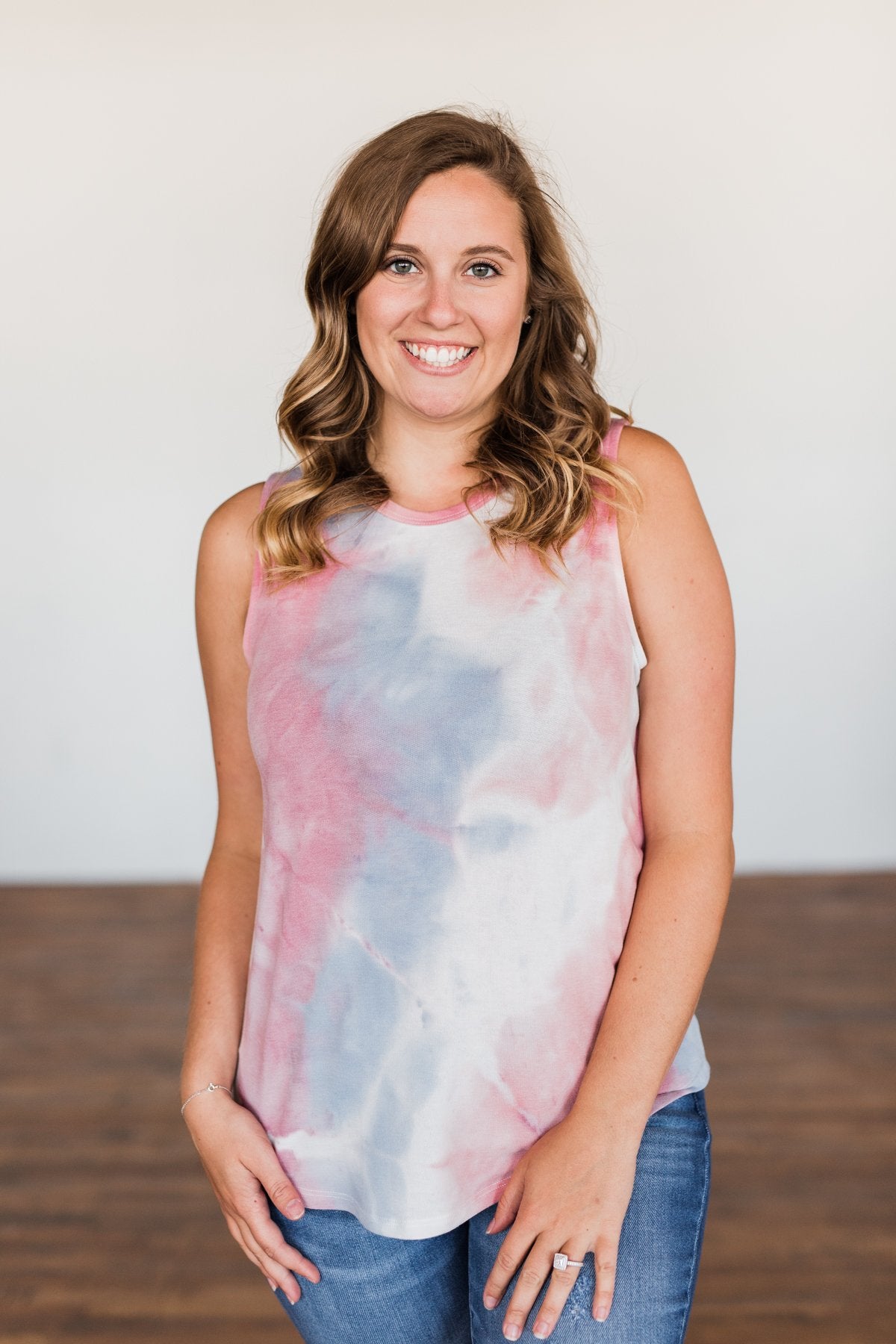 Brighten My Summer Tie Dye Tank Top- Blue, Pink, Ivory