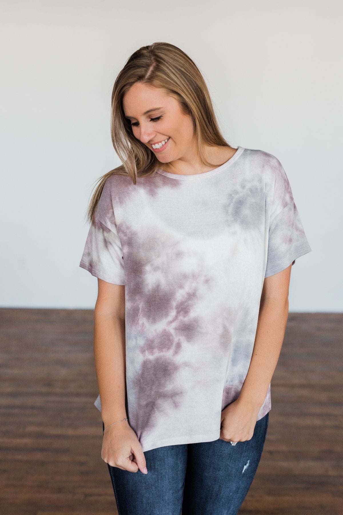 Whatever You Say Tie Dye Top- Plum & Grey