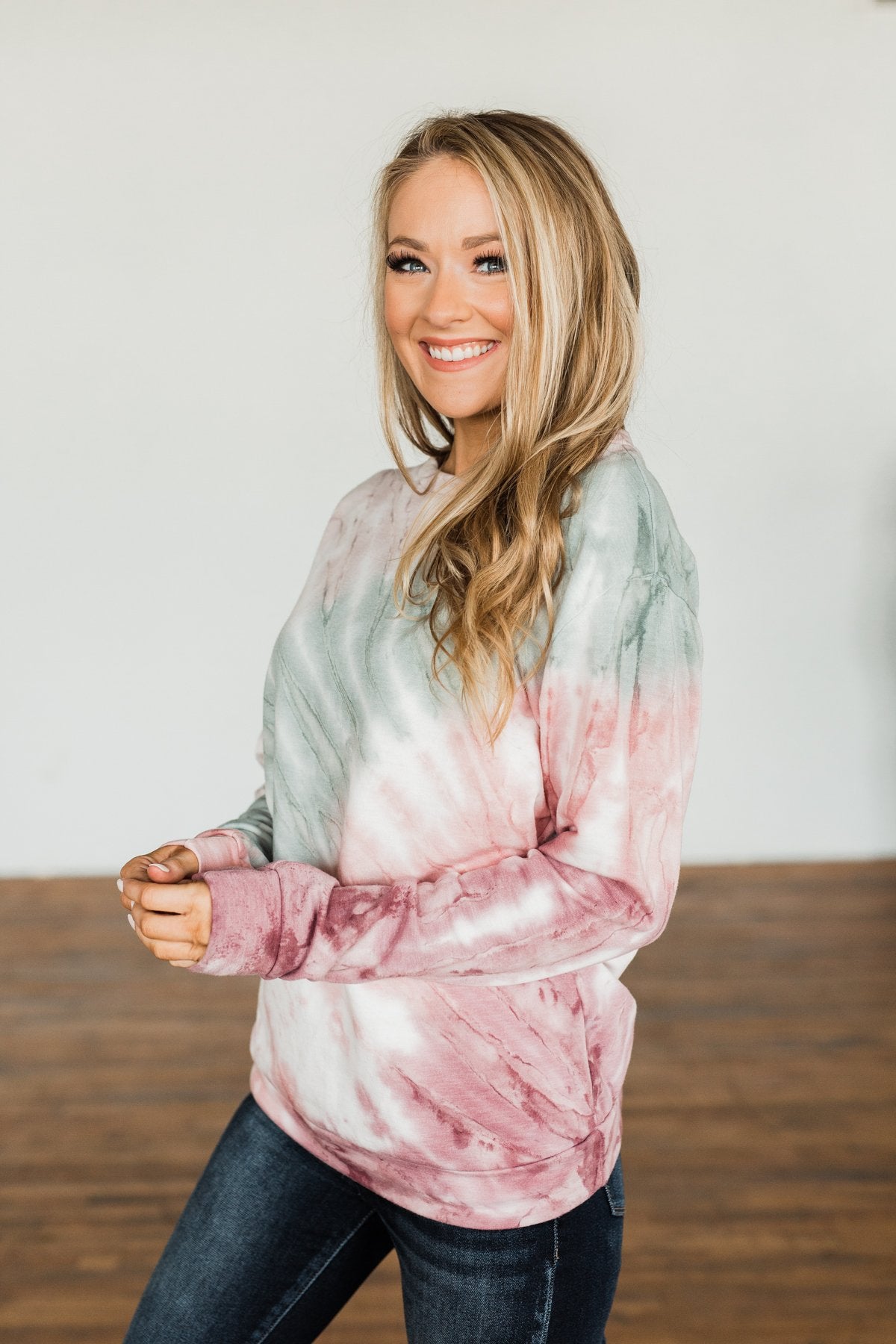 Change Of Heart Tie Dye Pullover Top- Taupe, Sage, & Mauve