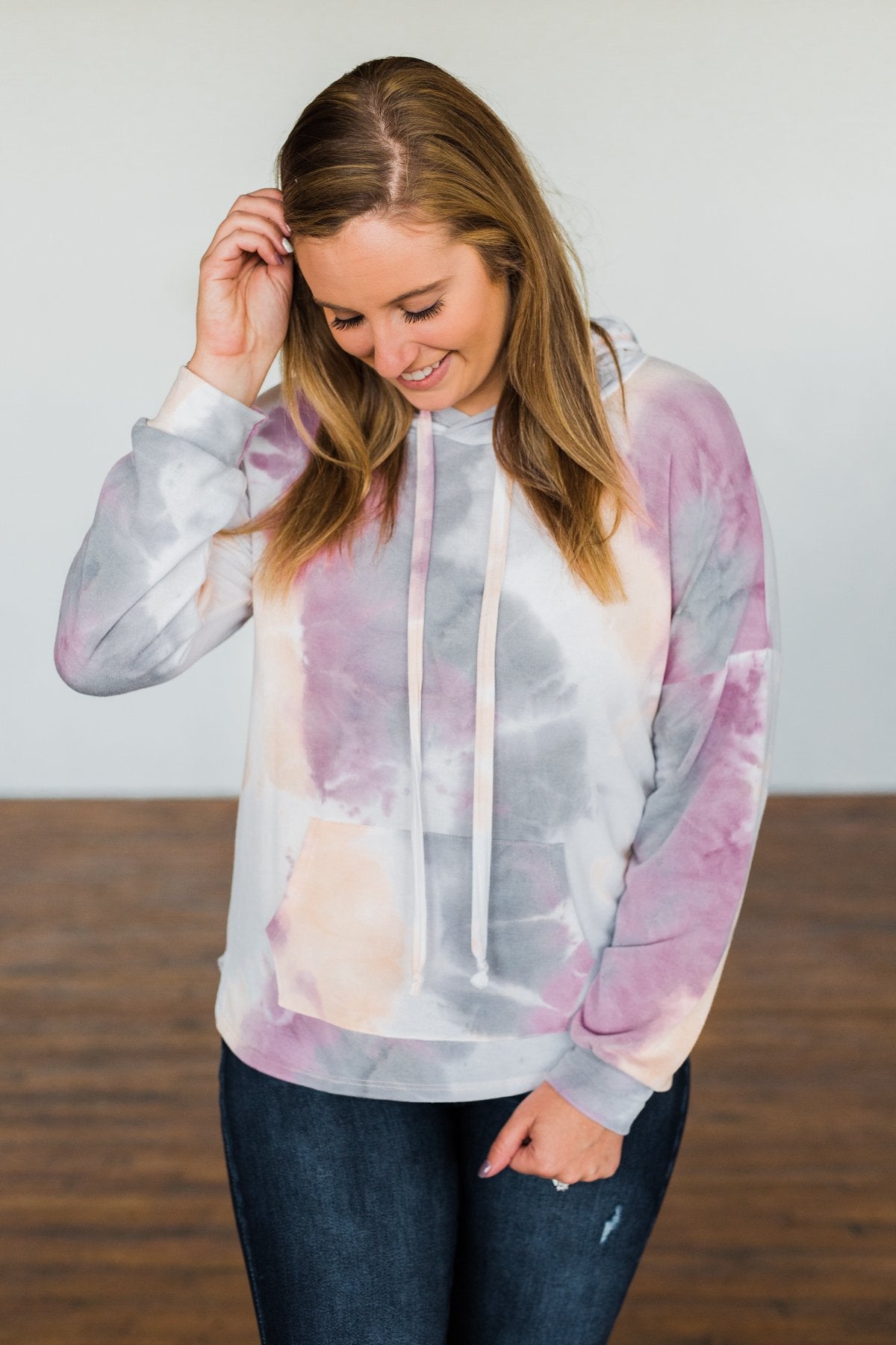 Show Me Some Love Tie Dye Hoodie- Orchid, Grey, Light Orange