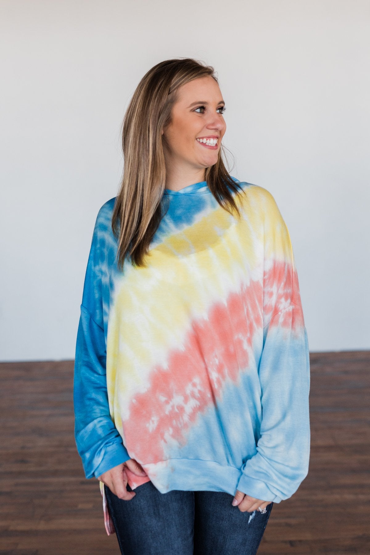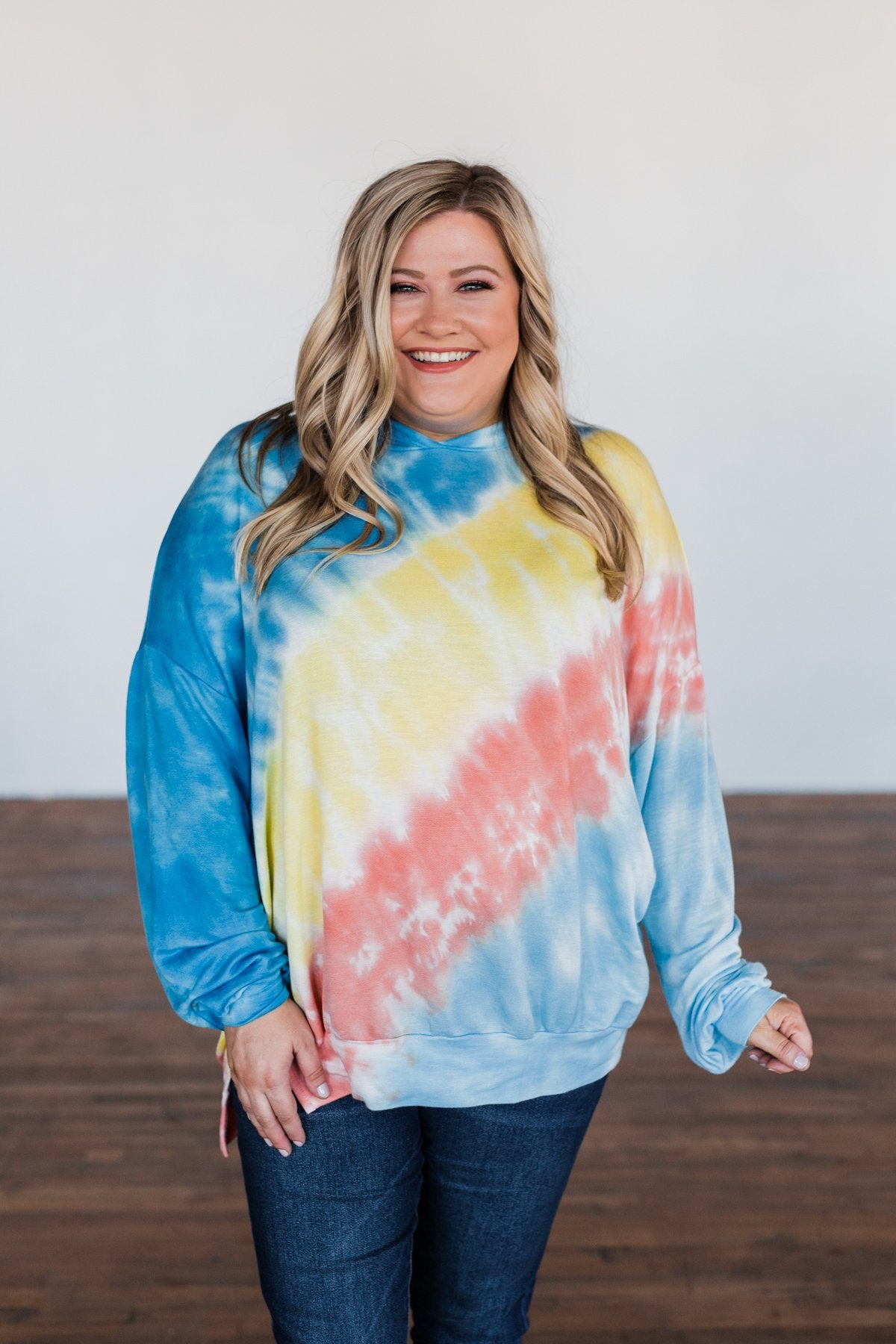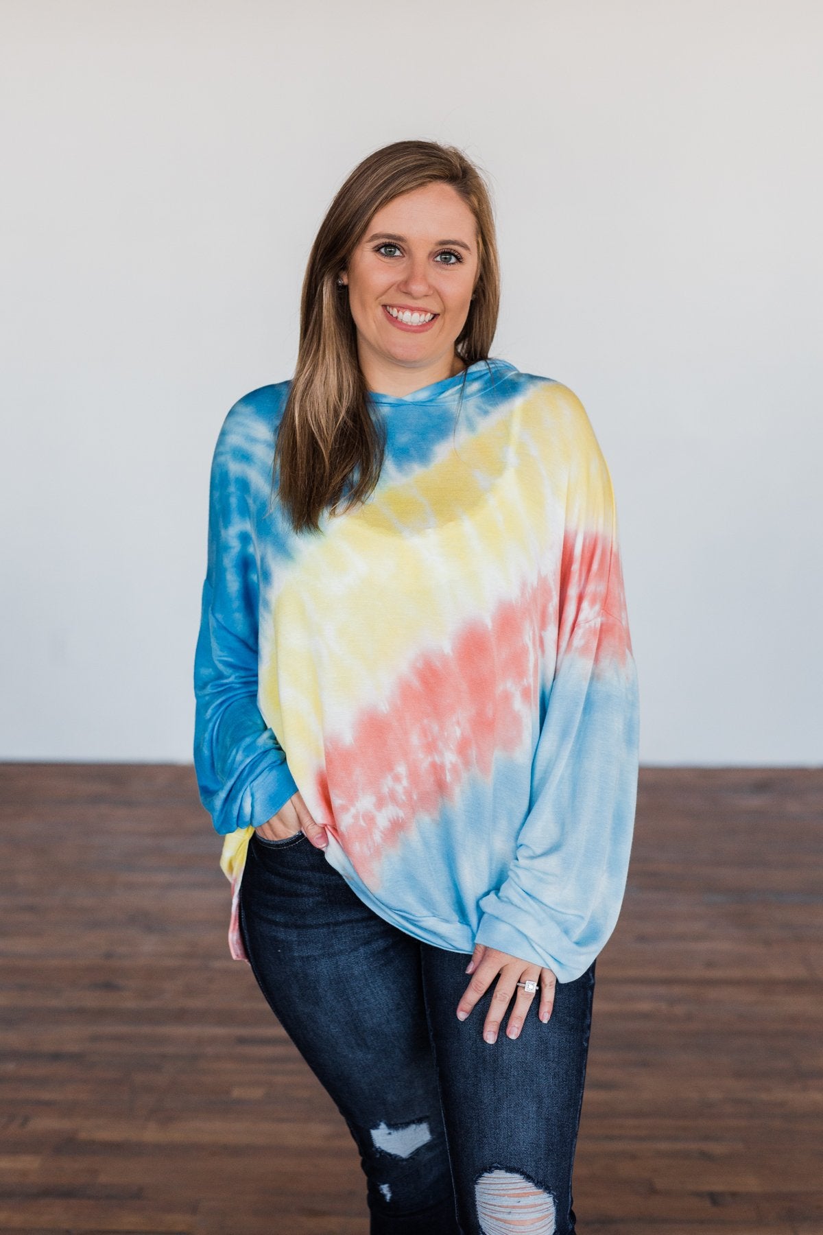 Walk into your weekend in style and comfort with this lightweight, oversized tie dye hoodie! Featuring details that will bring delight to your day such as the dolman sleeves, small side slits, and an oversized body style! Pair it with some leggings for a super cozy outfit or with some skinny jeans for a fun, lively look!