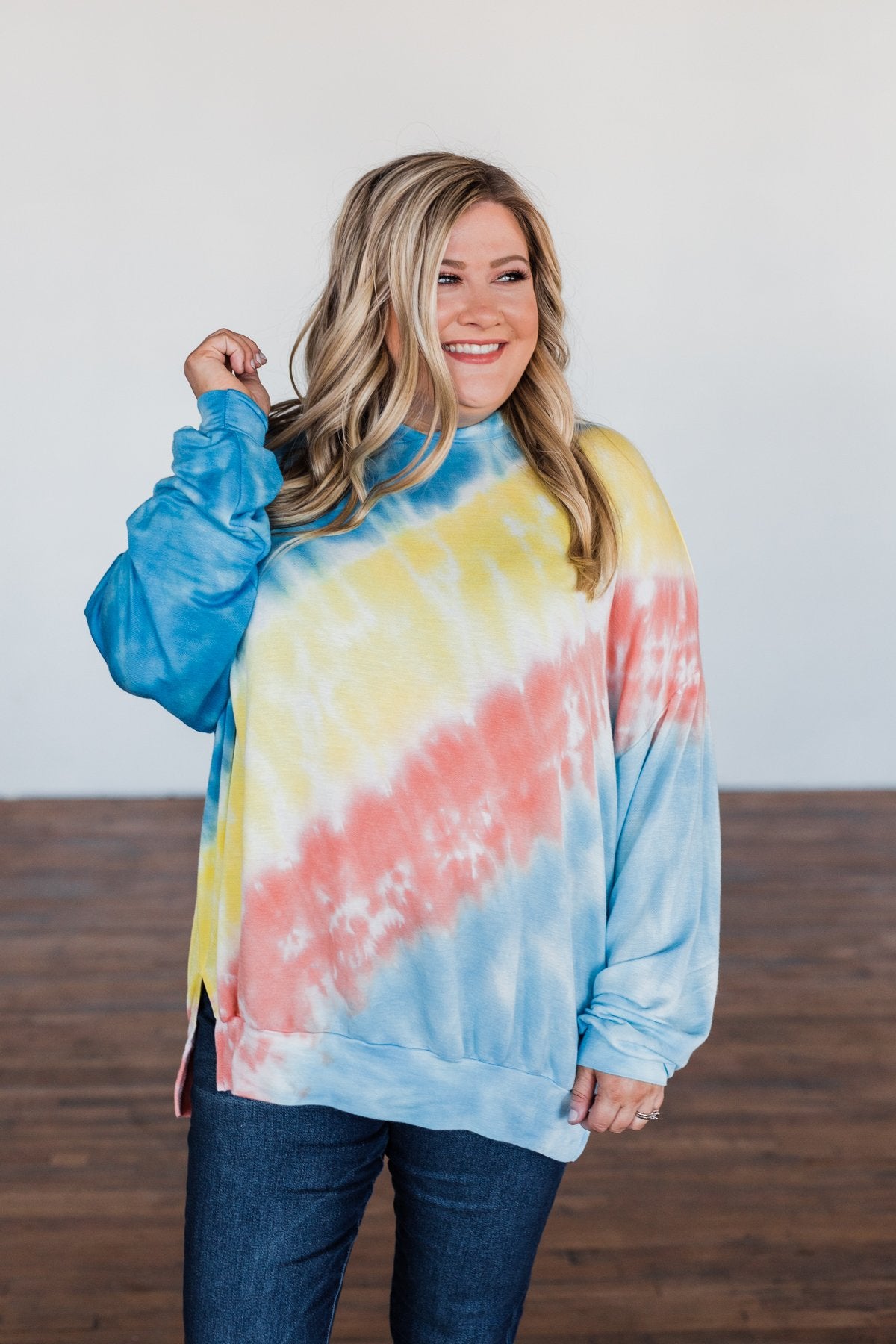Dreaming of Sunshine Oversized Hoodie- Blue, Yellow, & Coral