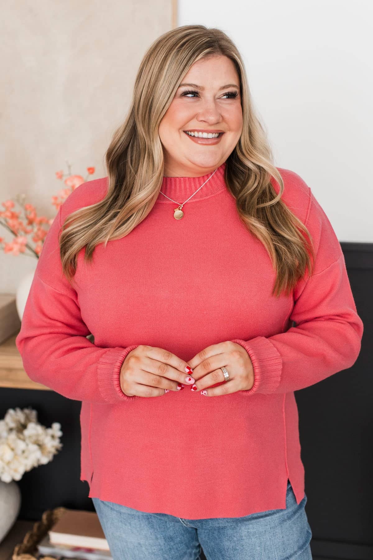 Truly Marvelous Mock Neck Sweater- Coral