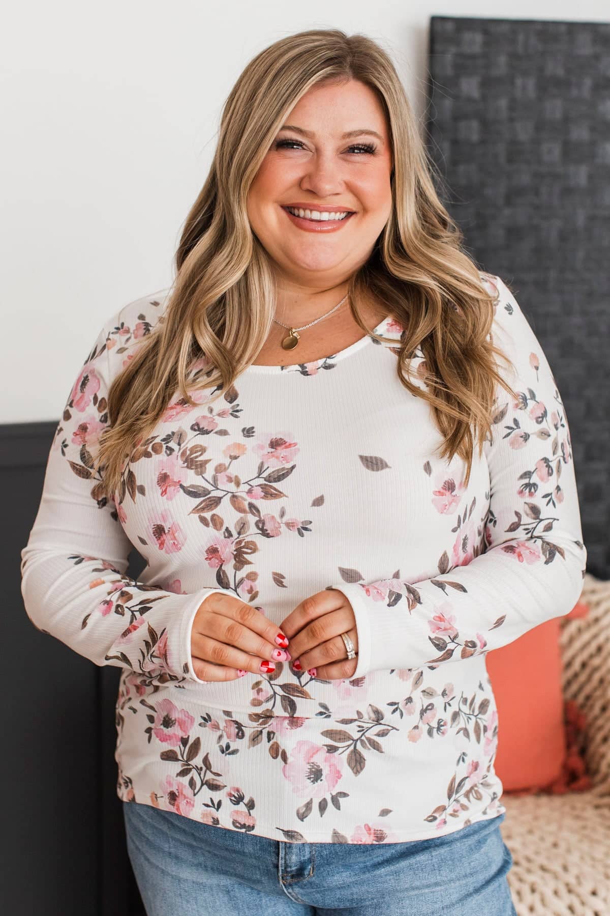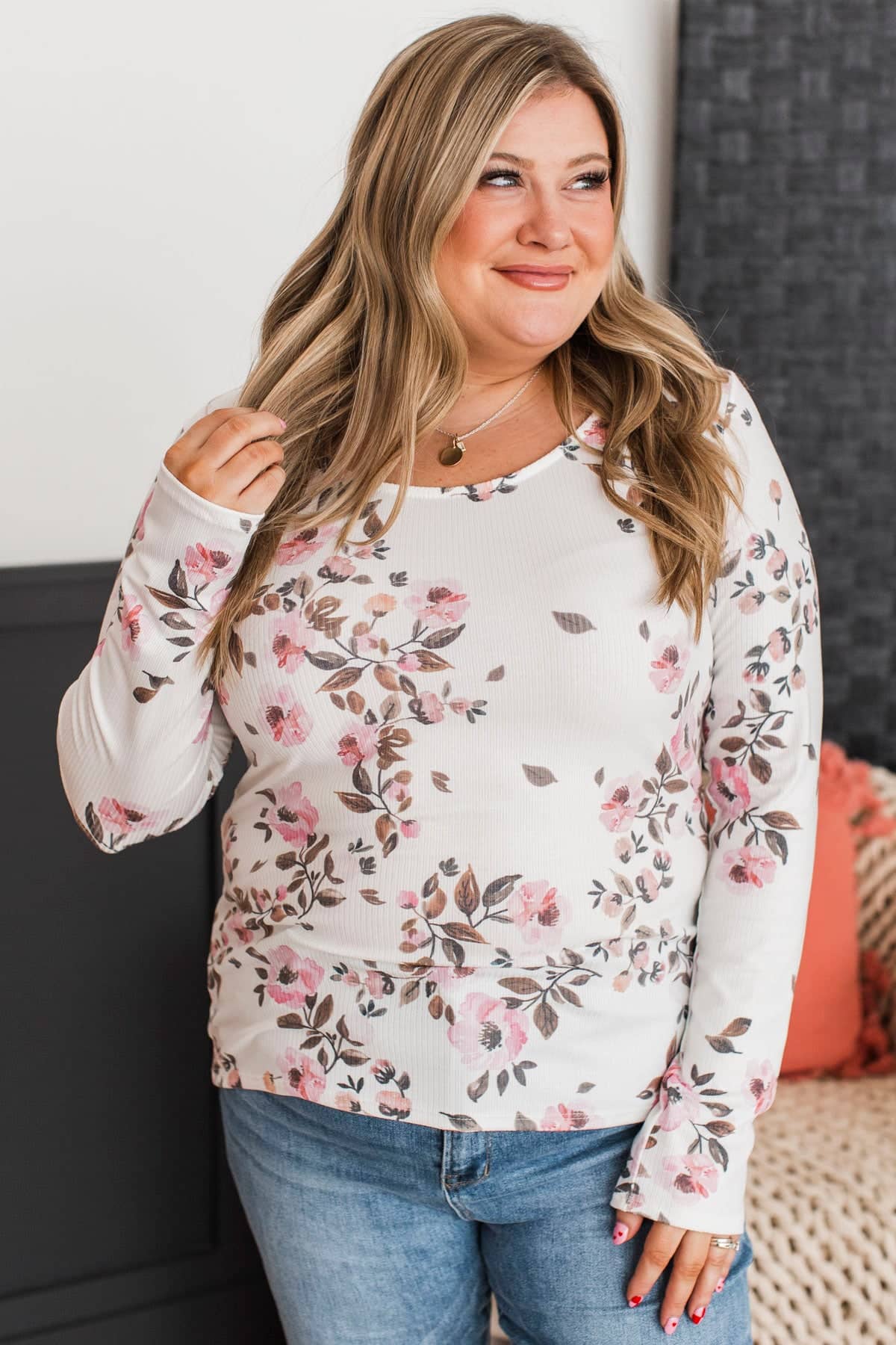 Defy Limits Long Sleeve Floral Top- Ivory & Pink