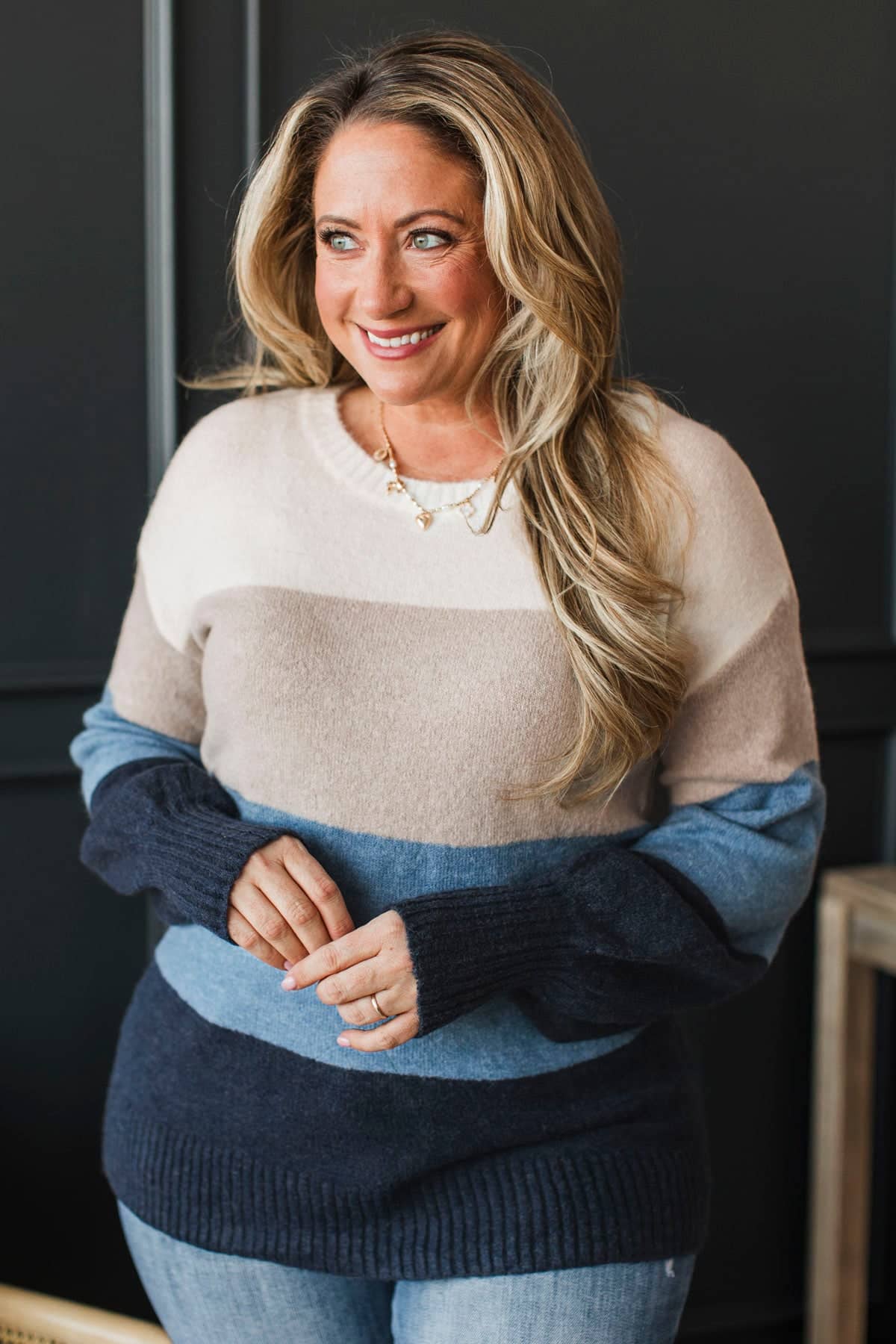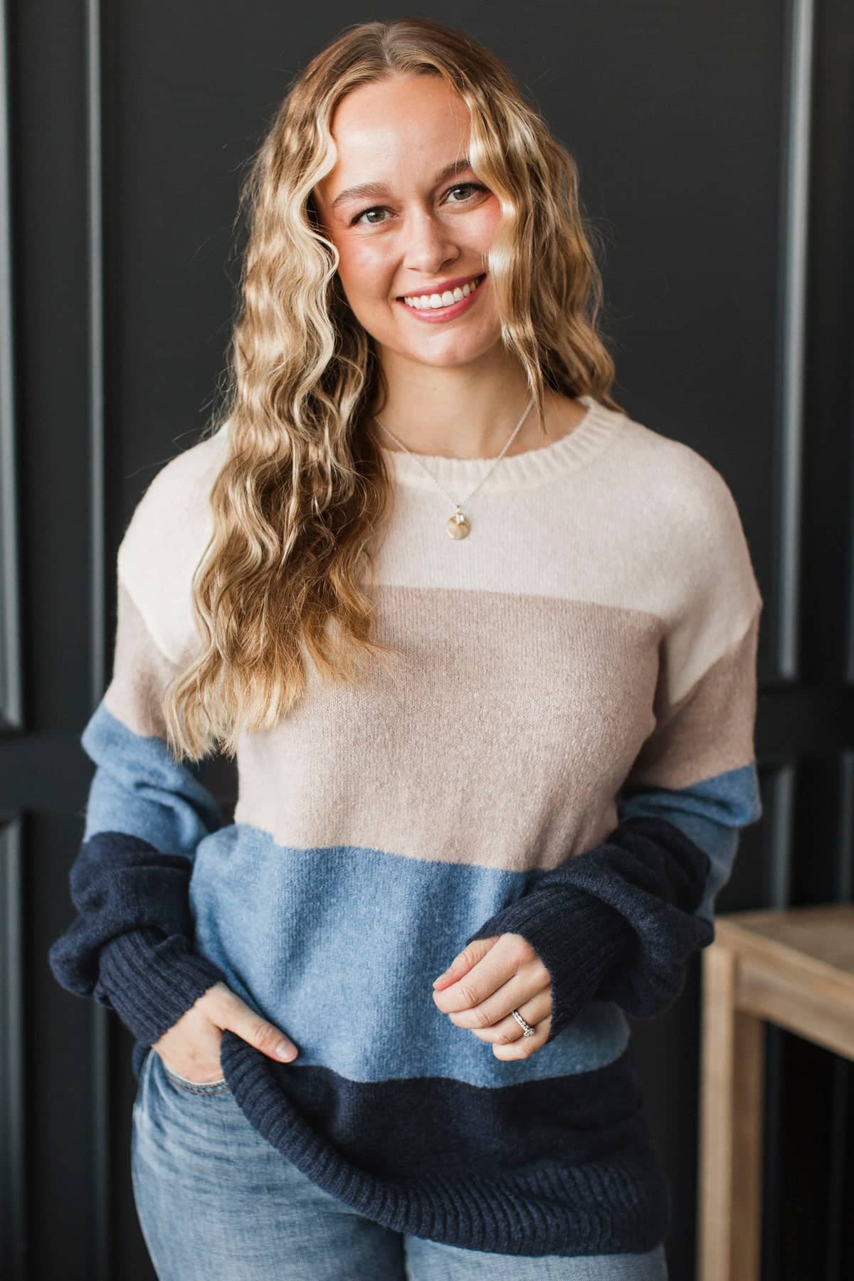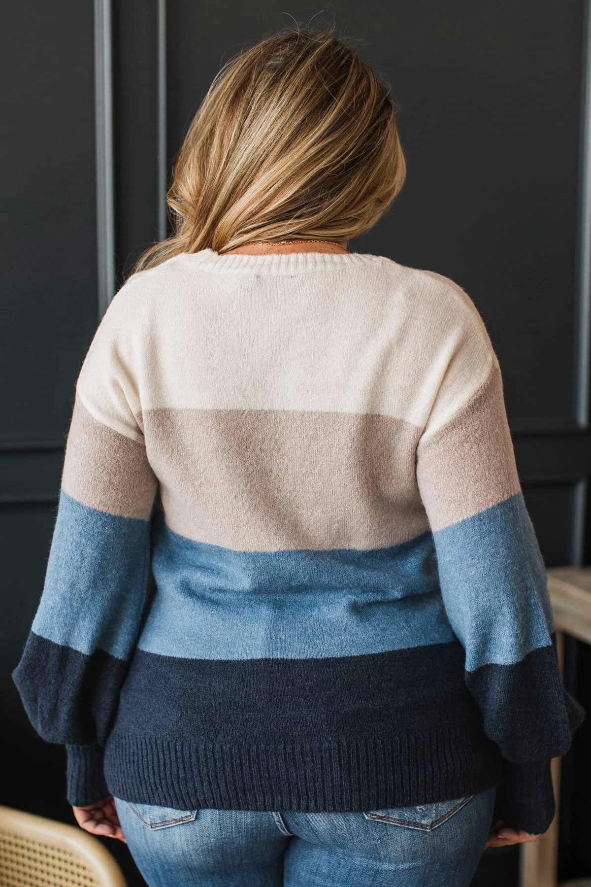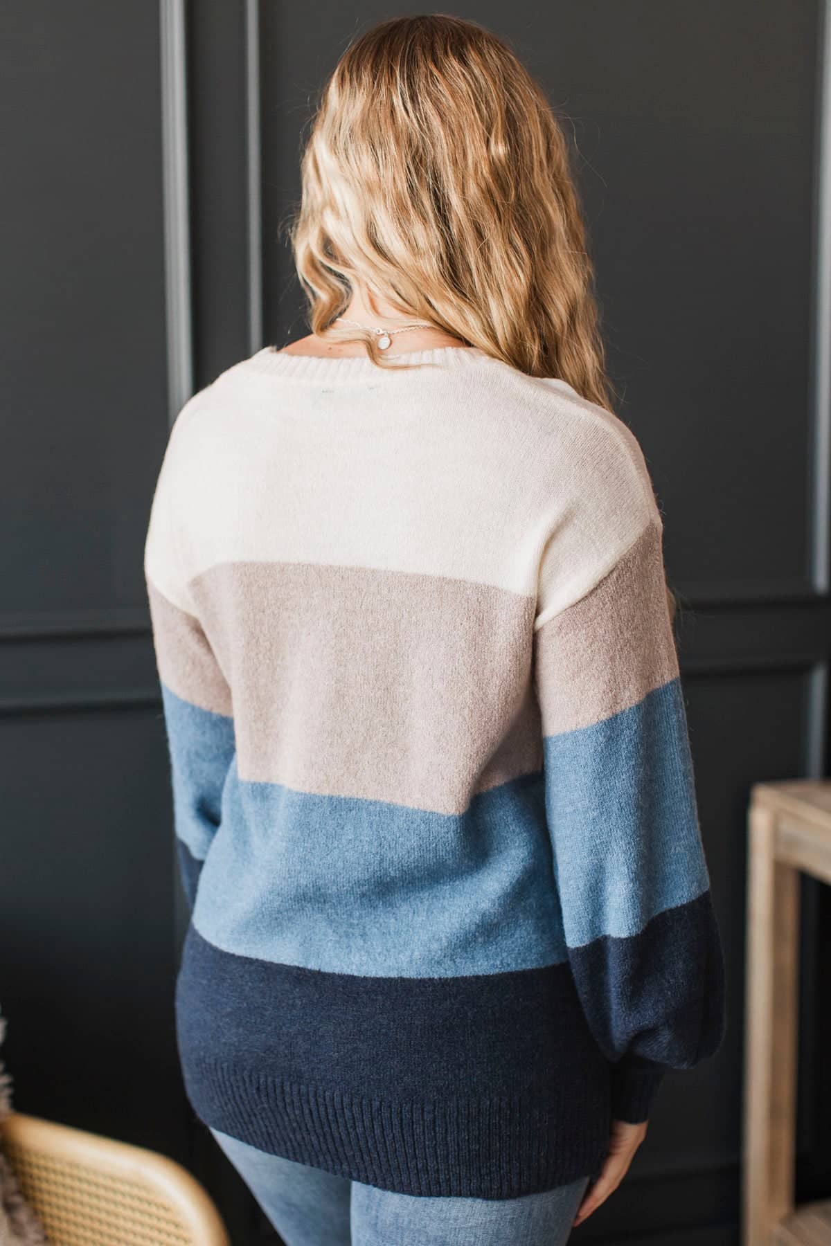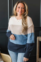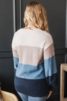 Simple Affection Color Block Knit Sweater- Ivory & Blue
