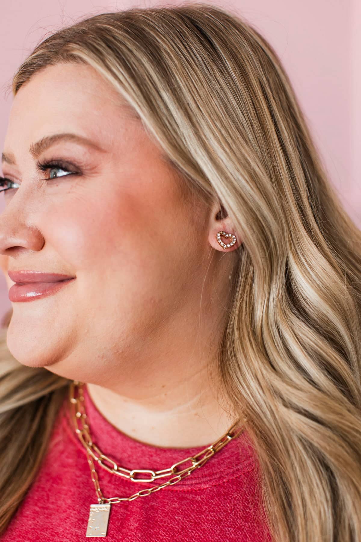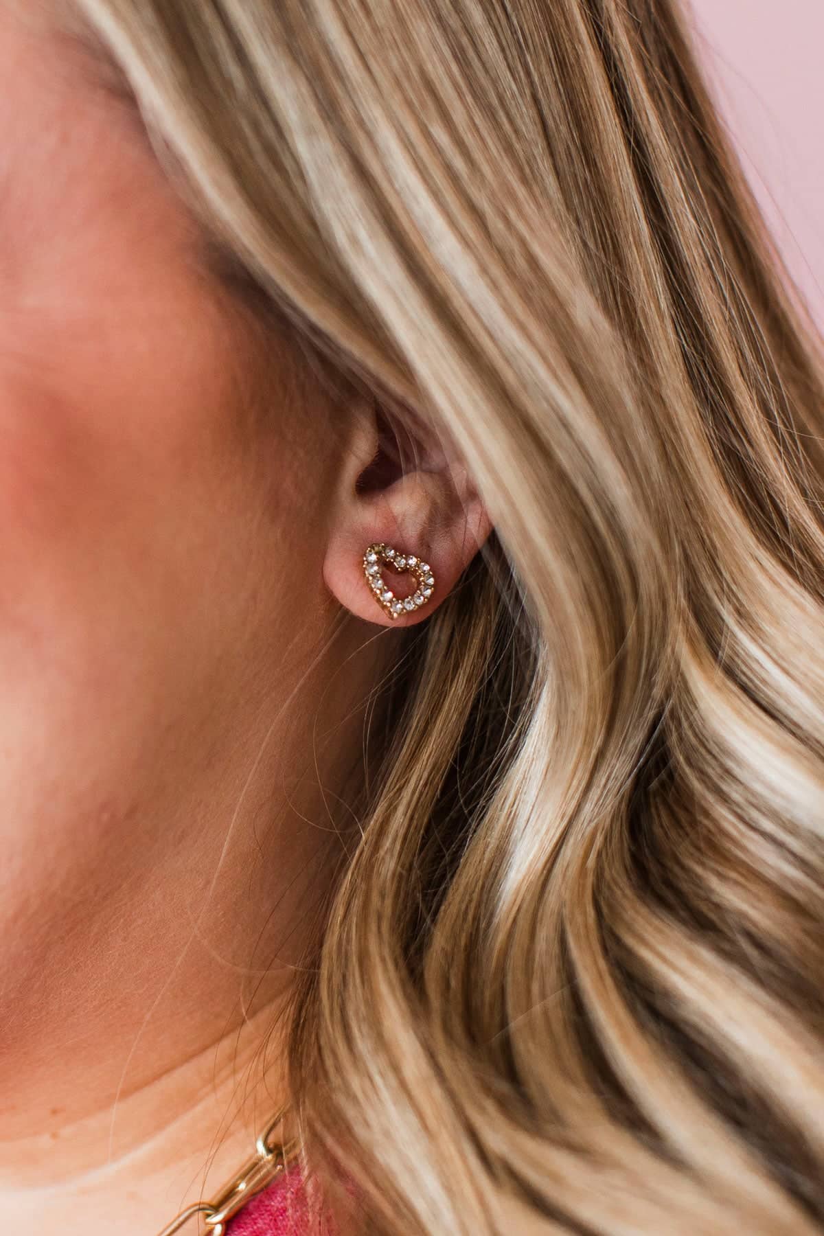 • Rhinestone studded heart earrings