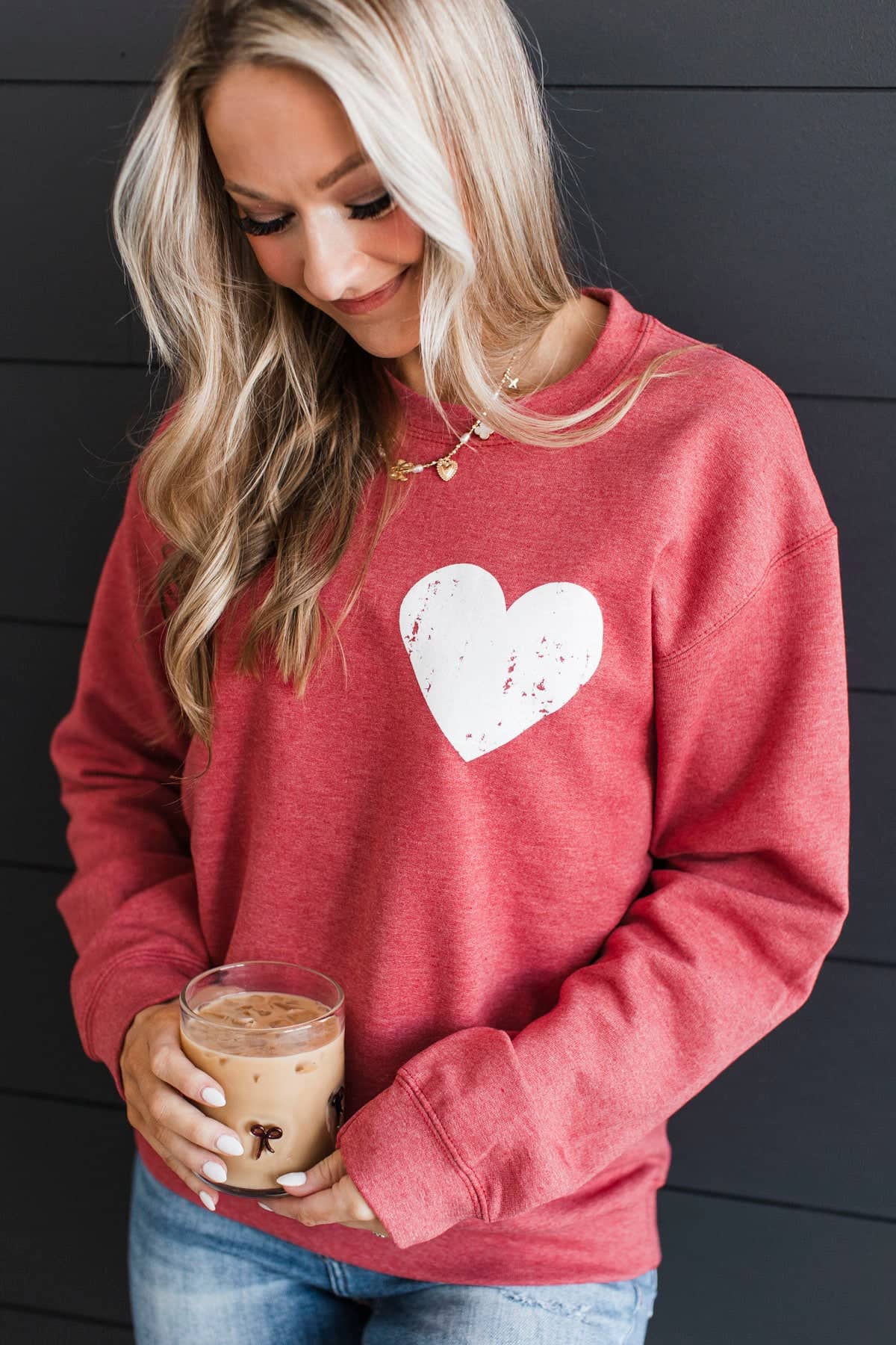 Celebrate Love Heart Crew Neck Pullover- Heather Red