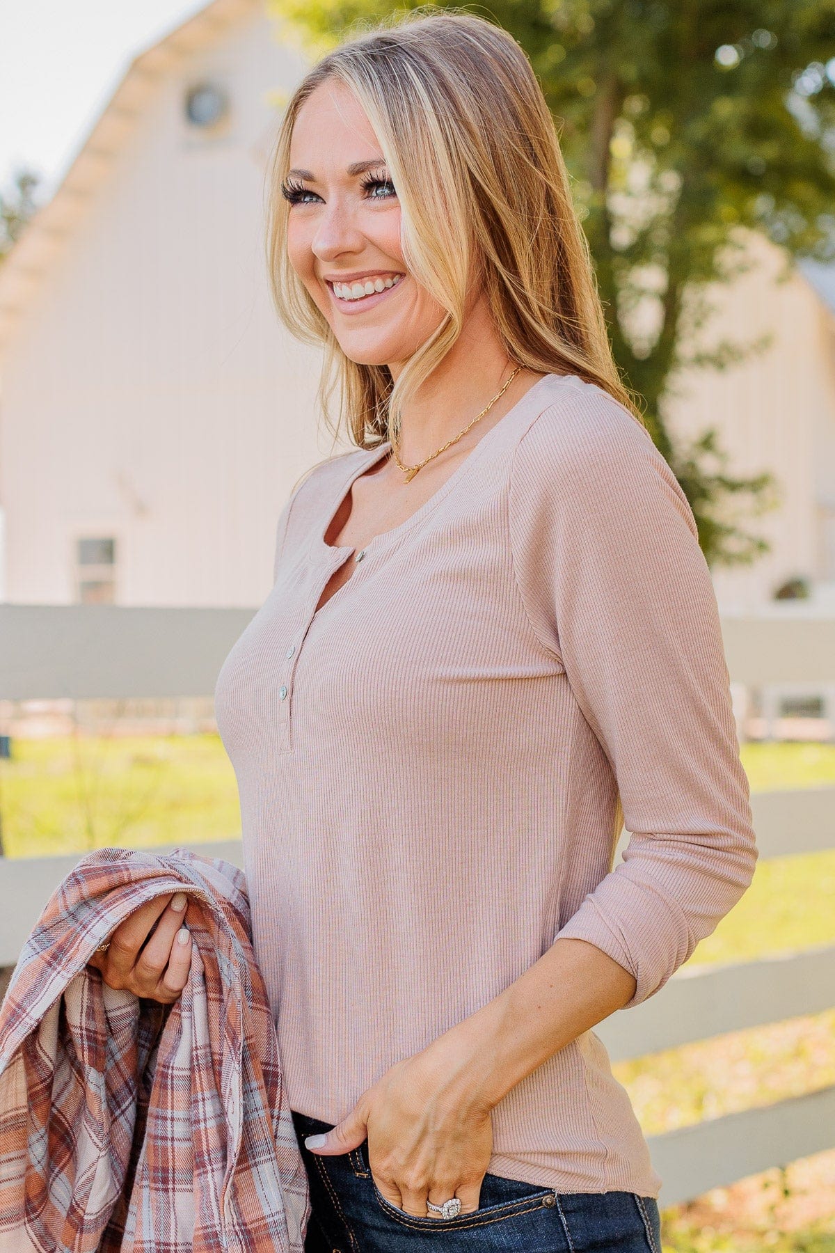 Take the stress out of getting dressed with this cute and casual henley top! You'll enjoy every element of this piece from the button neckline and the lightweight, knit material that makes top flattering from any angle! Wear this top under a Fall flannel for a flawless fit at any event!