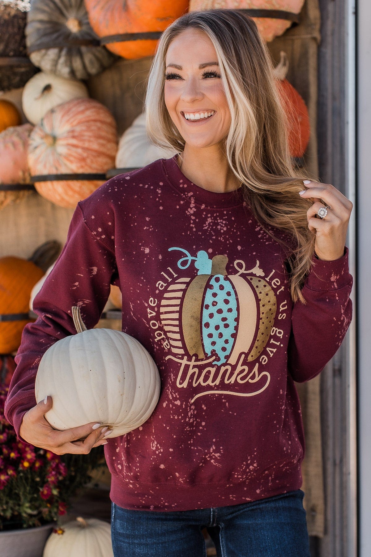"Let Us Give Thanks" Graphic Crew Neck- Burgundy
