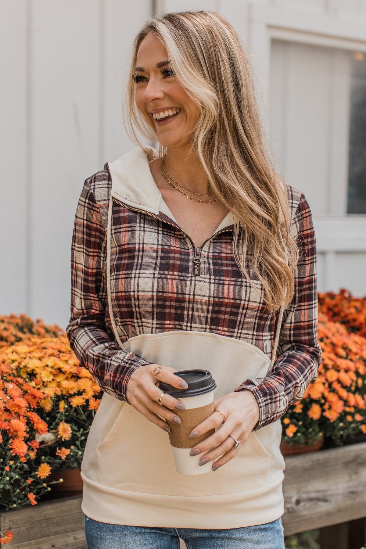 Harvest Season Plaid Button Top- Brown & Navy