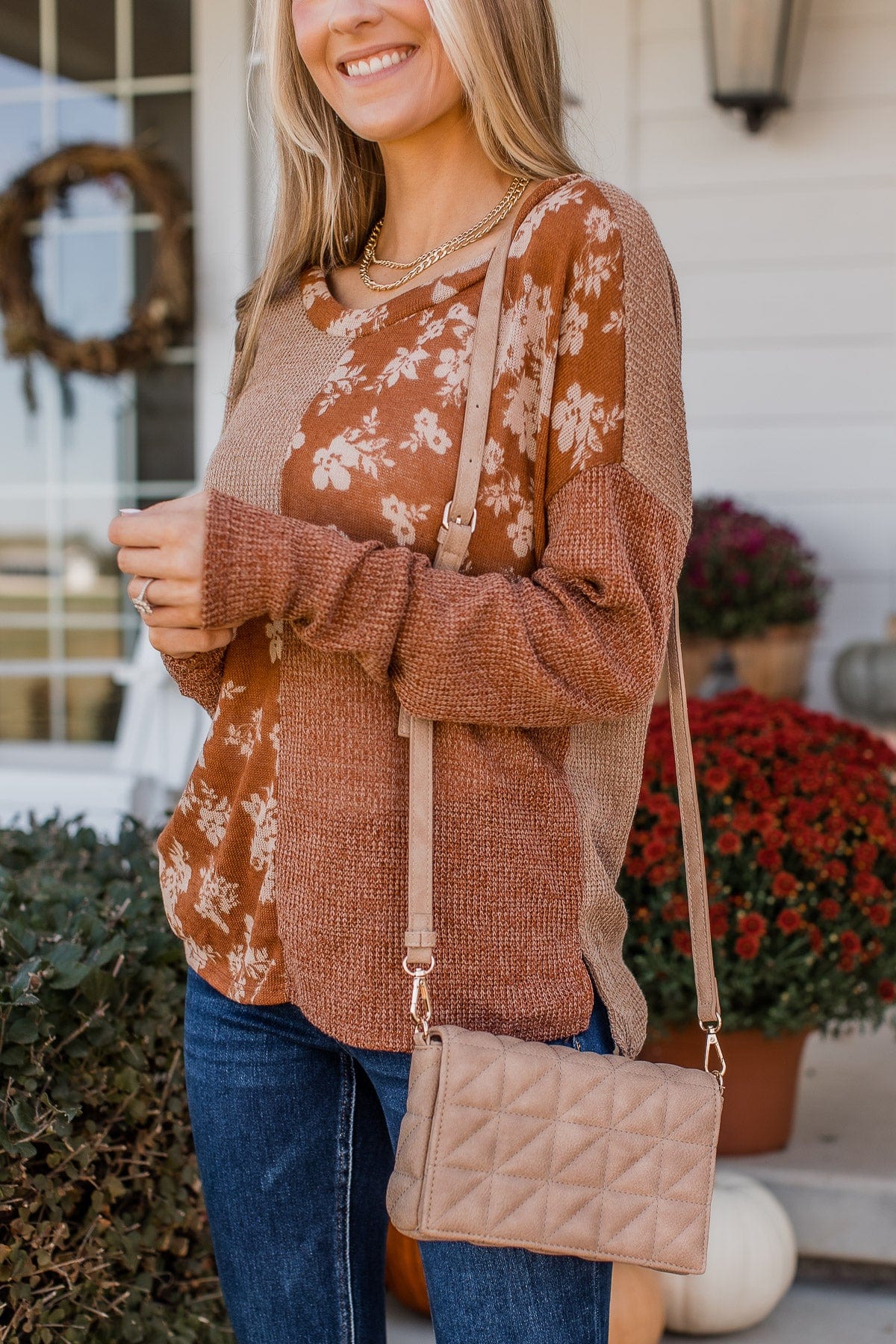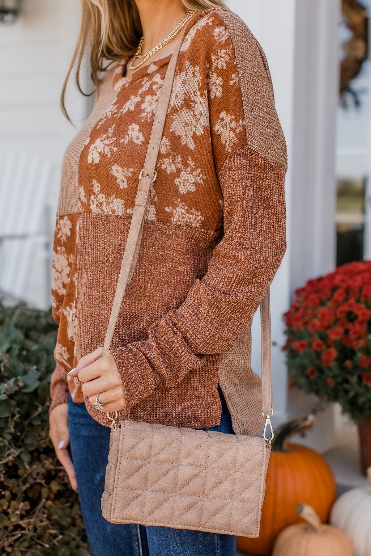 Season Of Thanks Color Block Top- Rust & Taupe