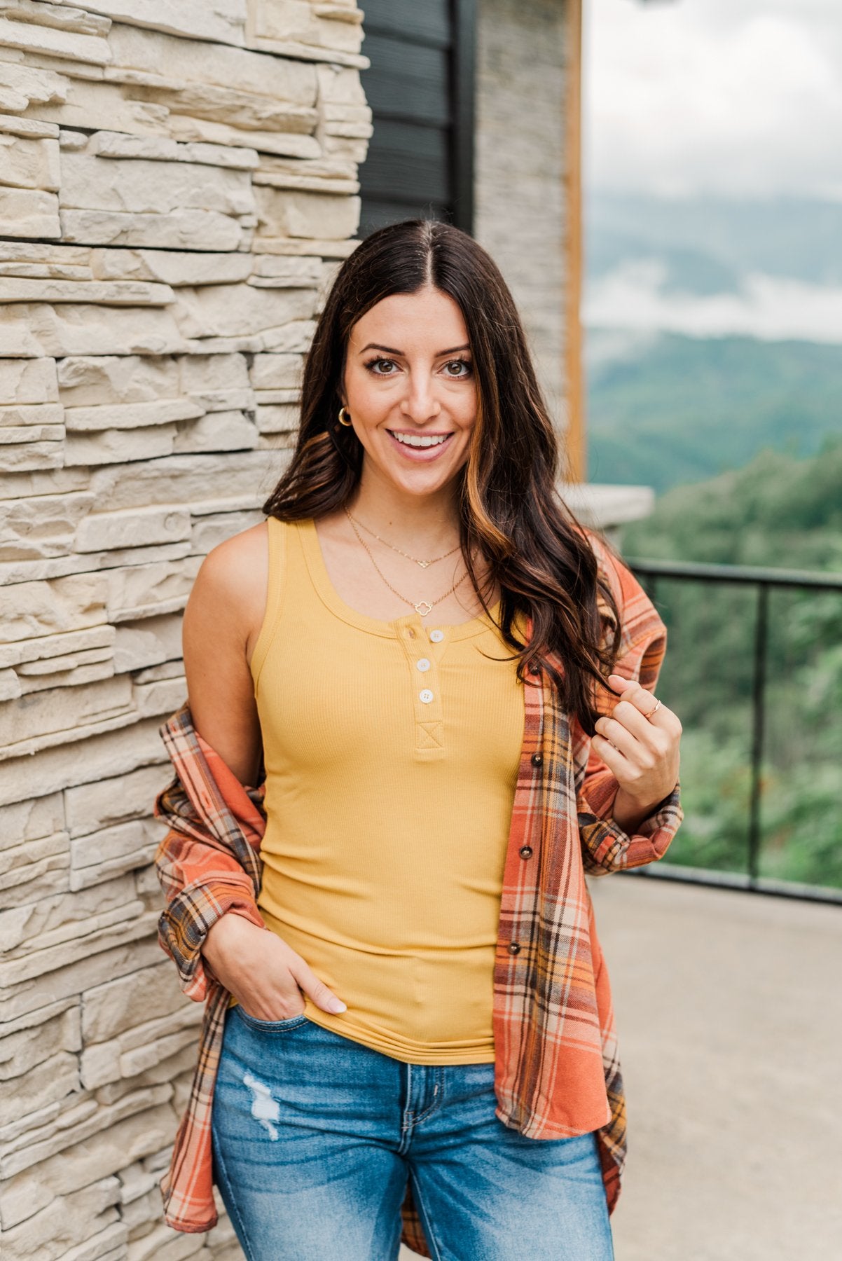 Uplifting Spirits Button Henley Tank Top- Golden Yellow