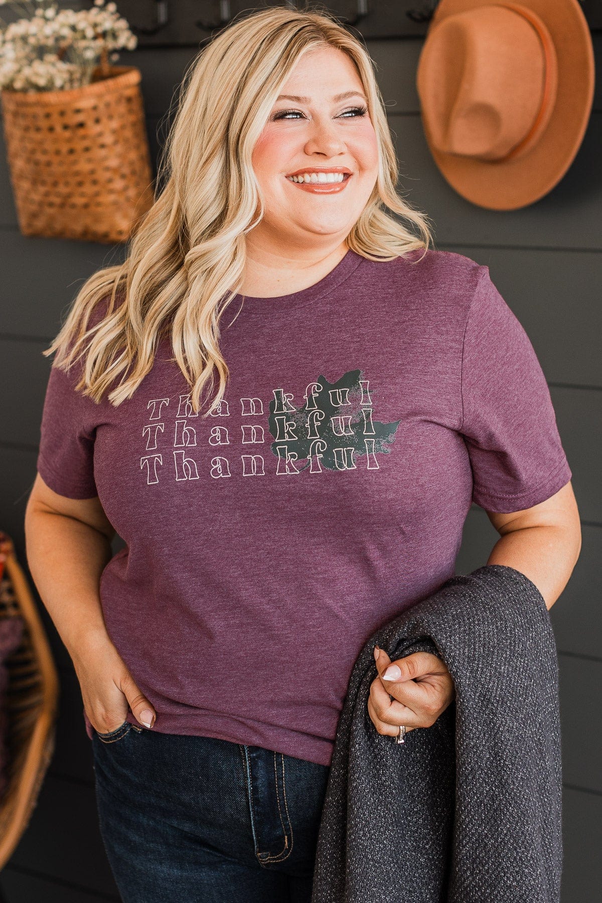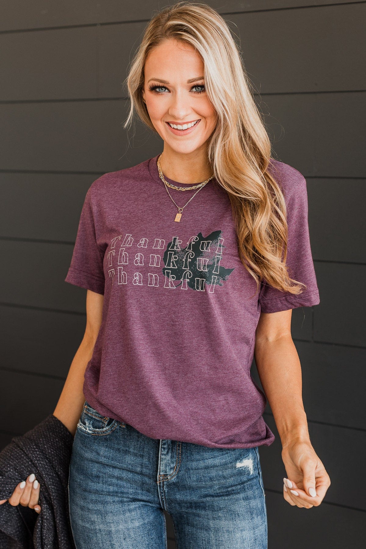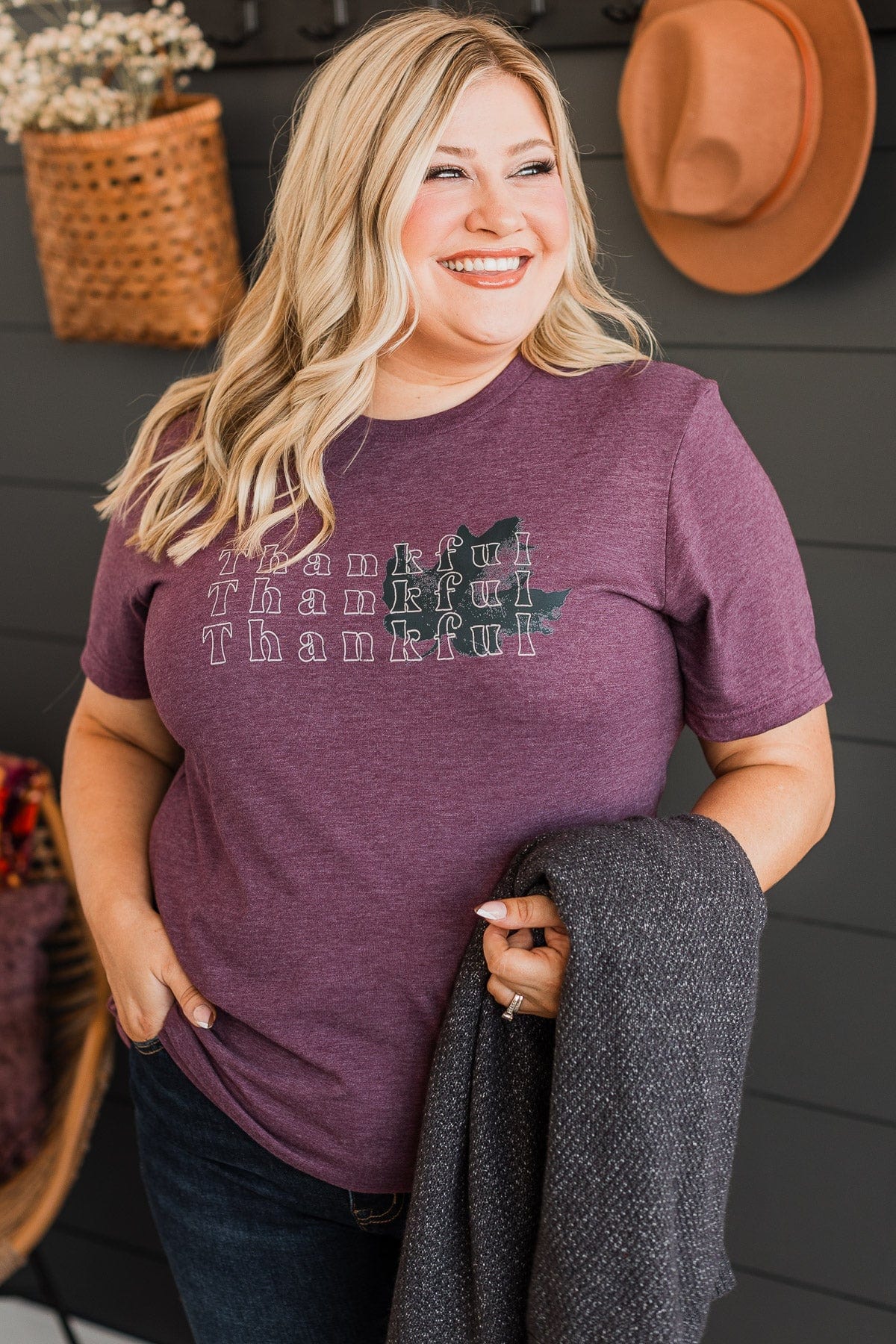 "Thankful" Graphic Tee- Maroon
