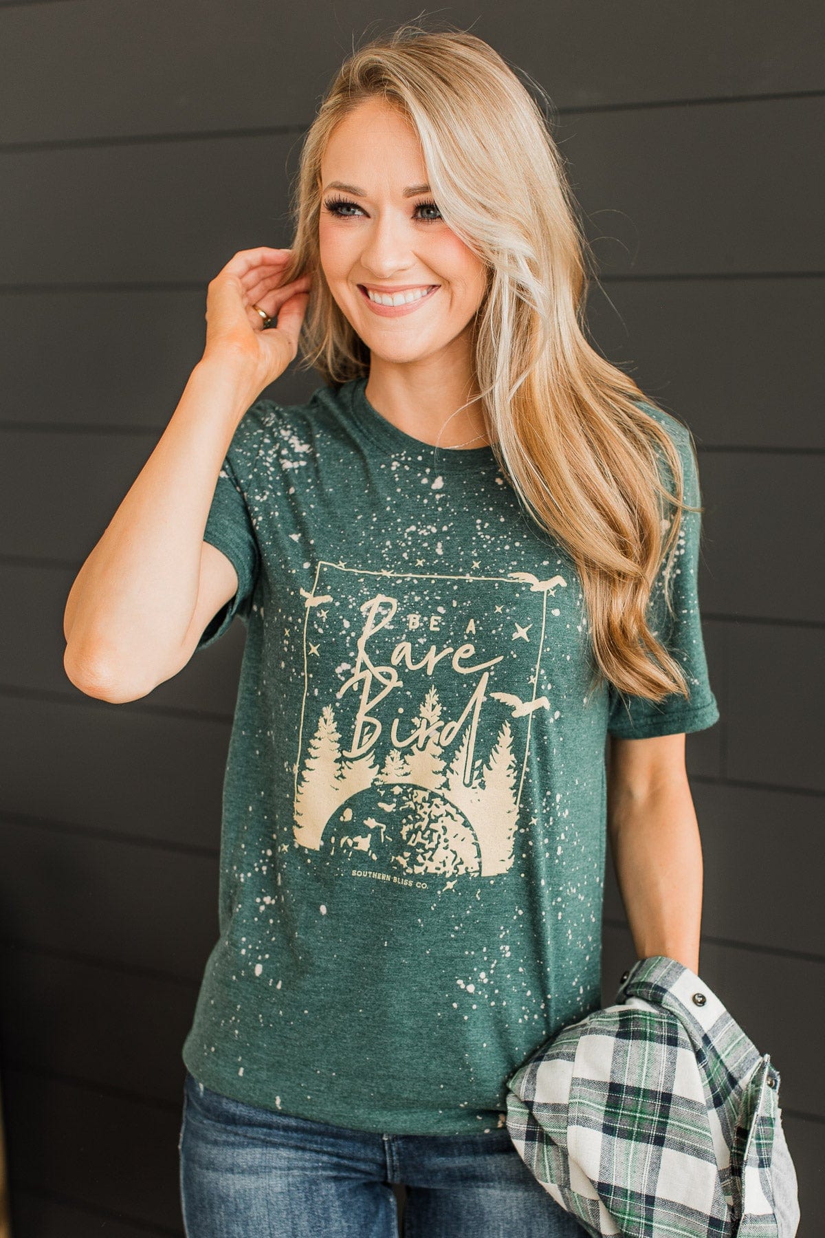 "Be A Rare Bird" Graphic Tee- Hunter Green