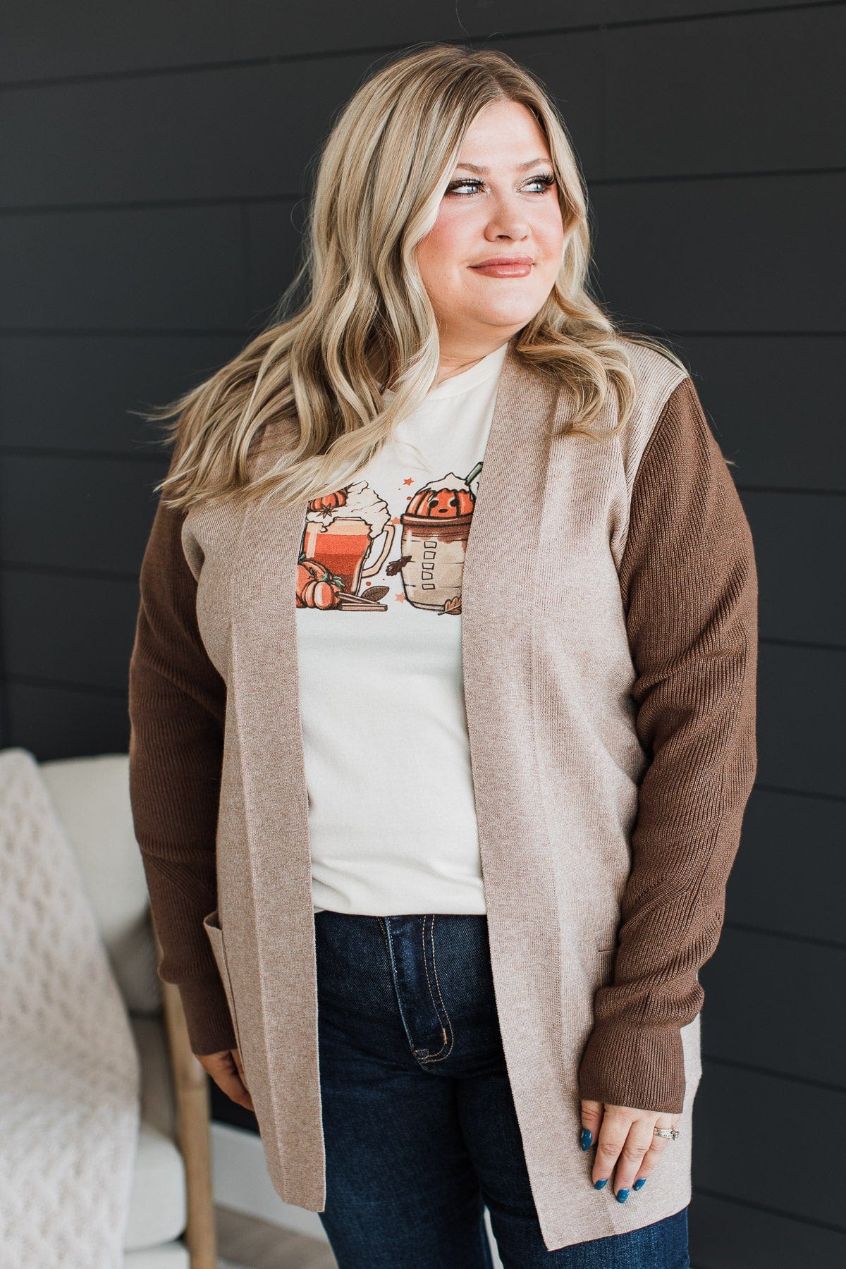 Cherish You Always Knit Cardigan- Taupe & Brown