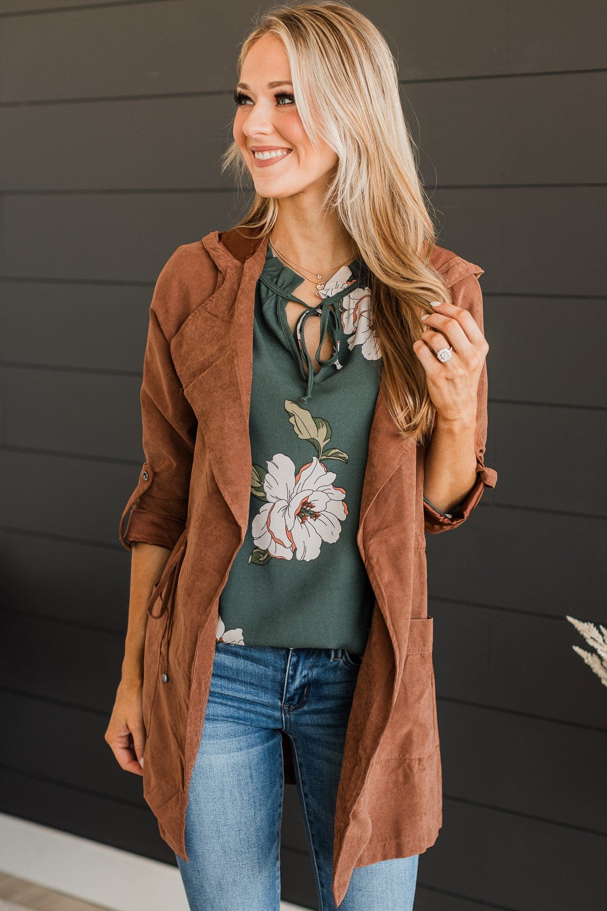 Go Getter Open Front Jacket- Dark Camel