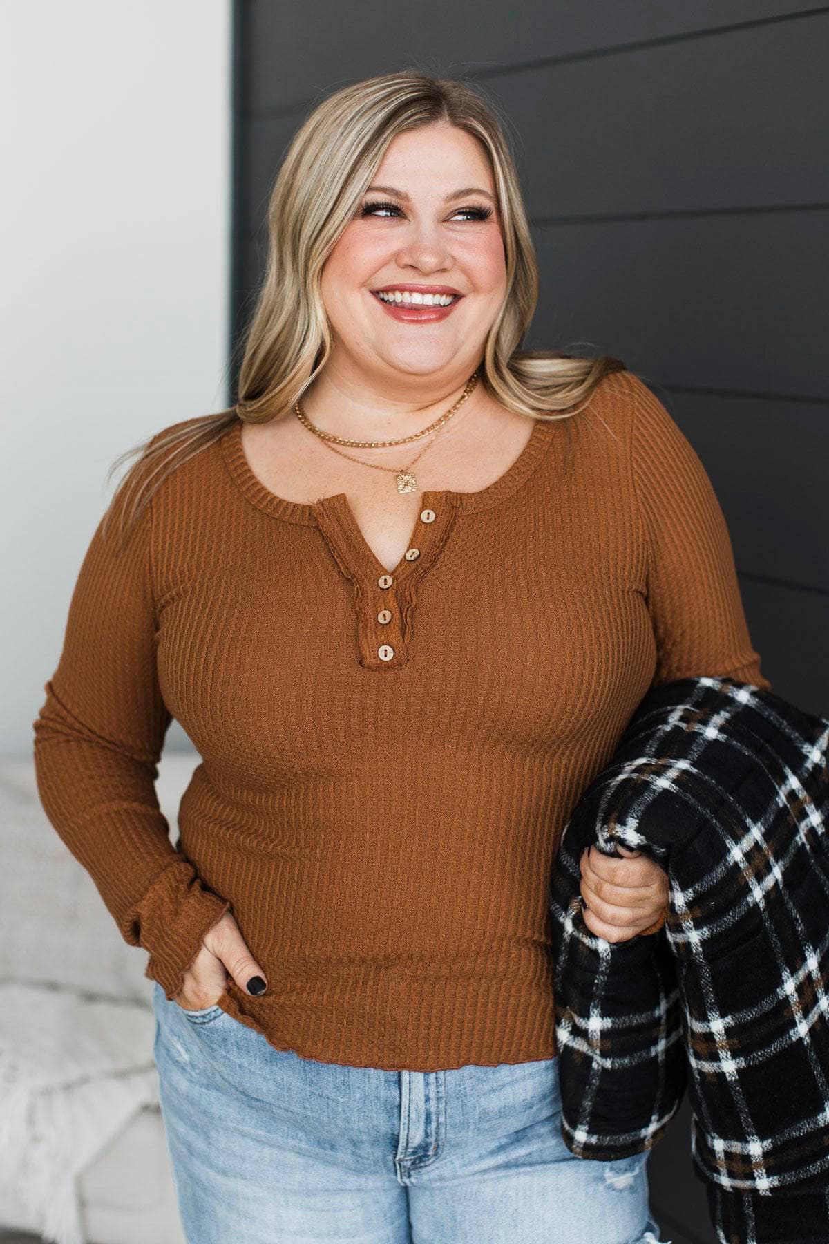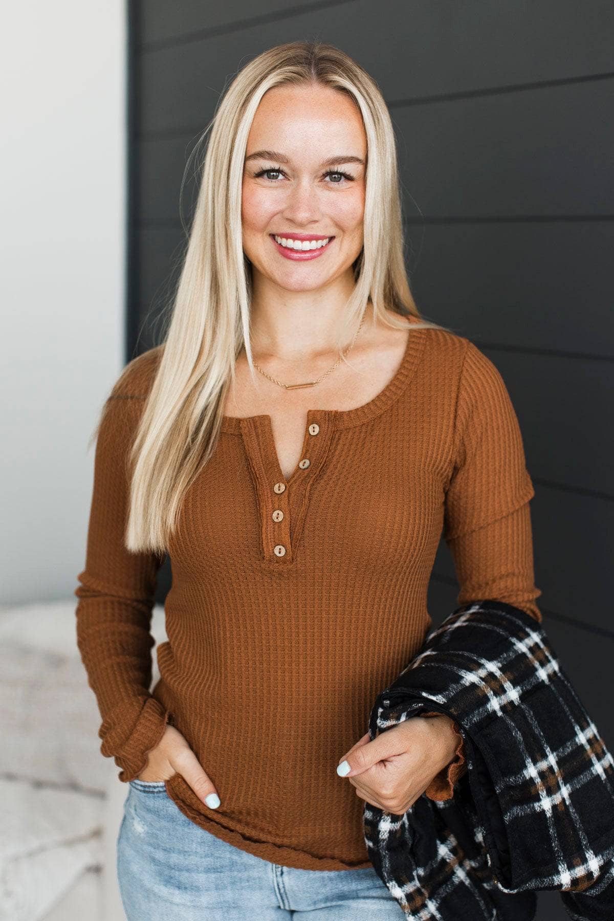 Greatness Awaits Waffle Knit Top- Orange Rust