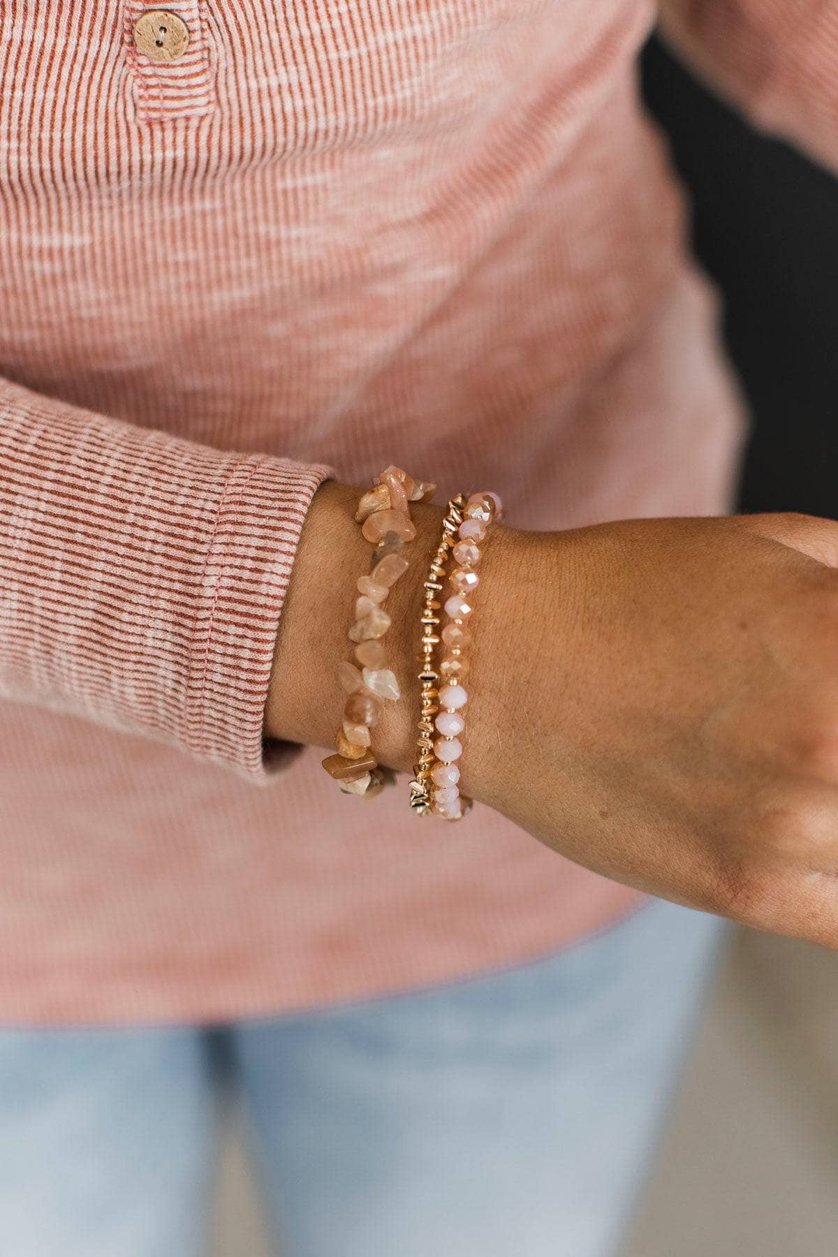 Laugh More Long Sleeve Ribbed Top- Dusty Peach