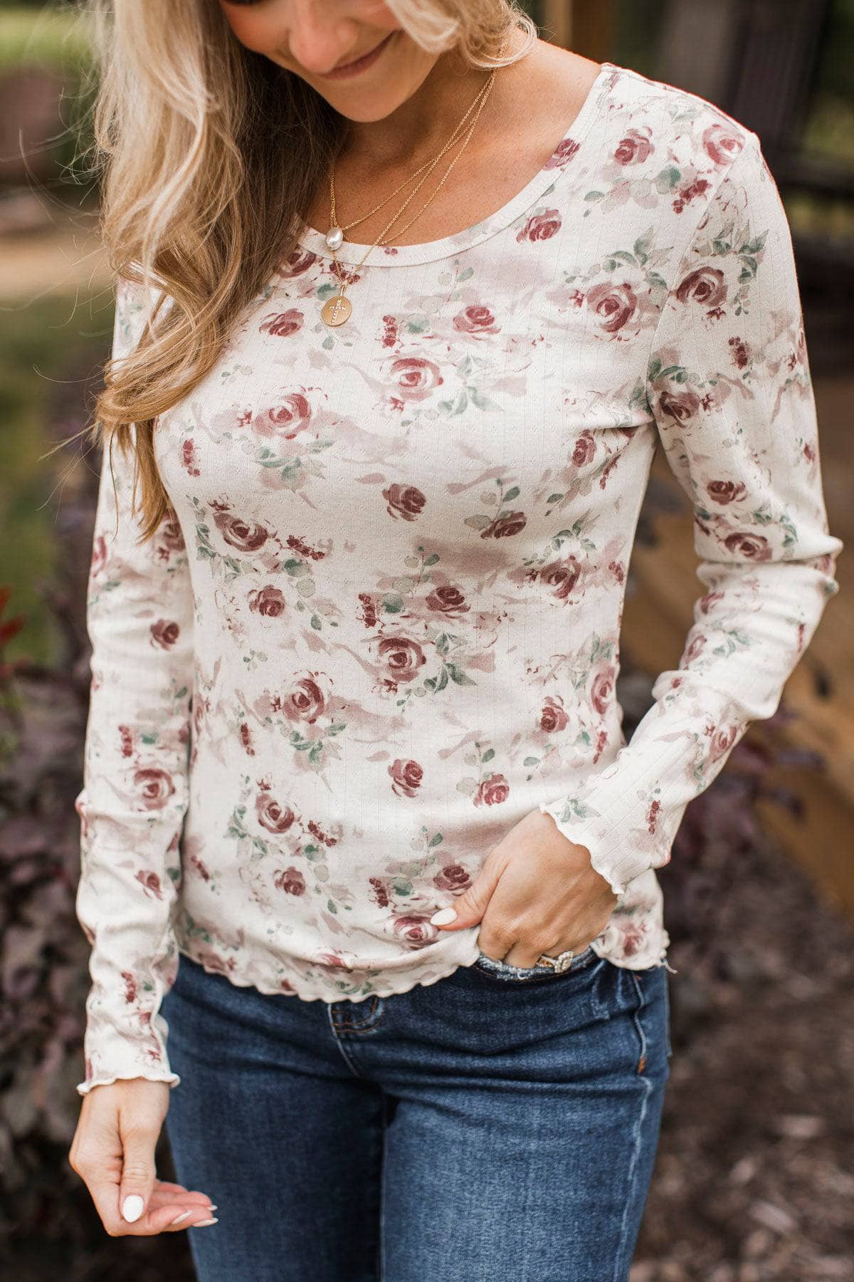 Keeper Of My Heart Floral Pointelle Top- Ivory & Plum
