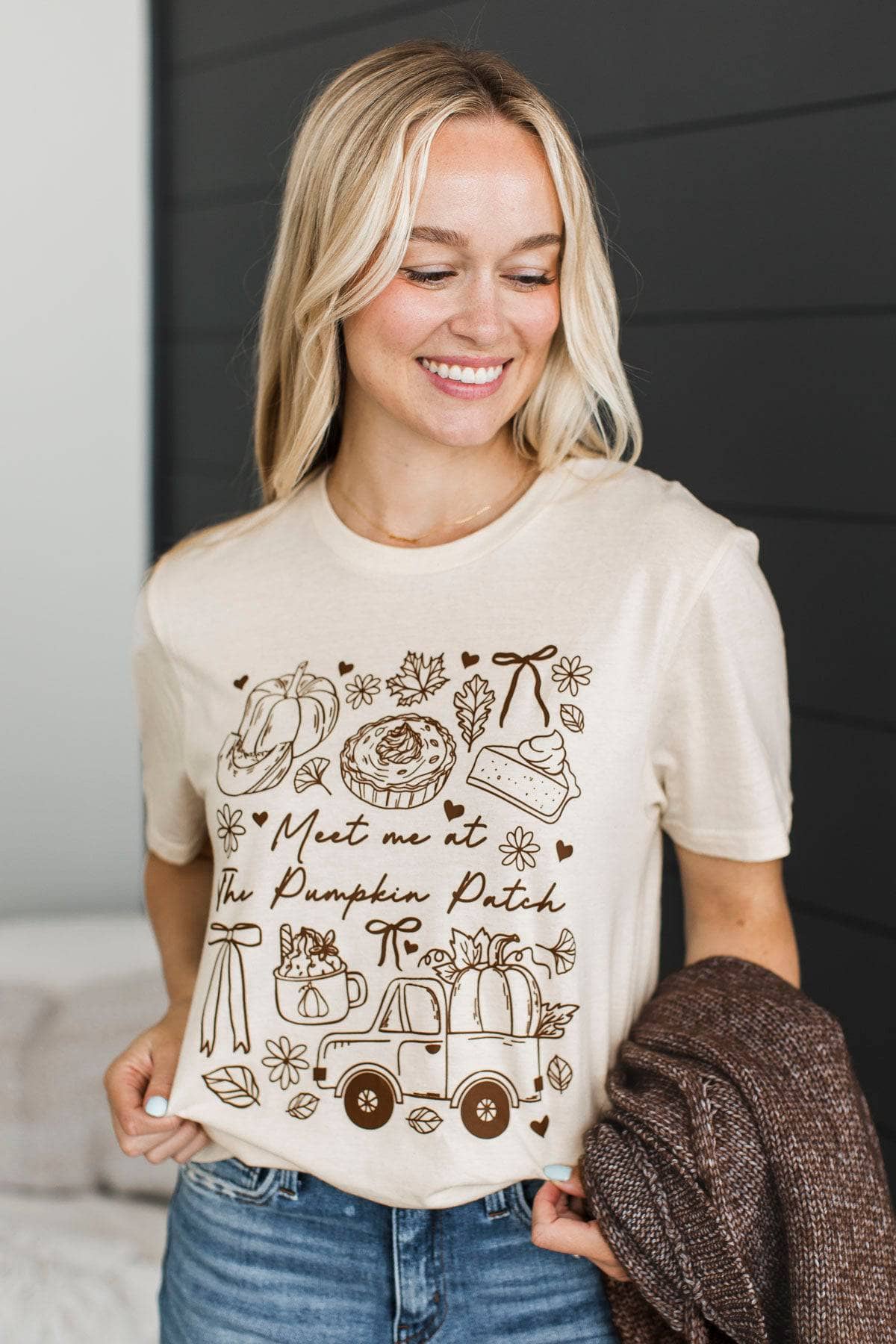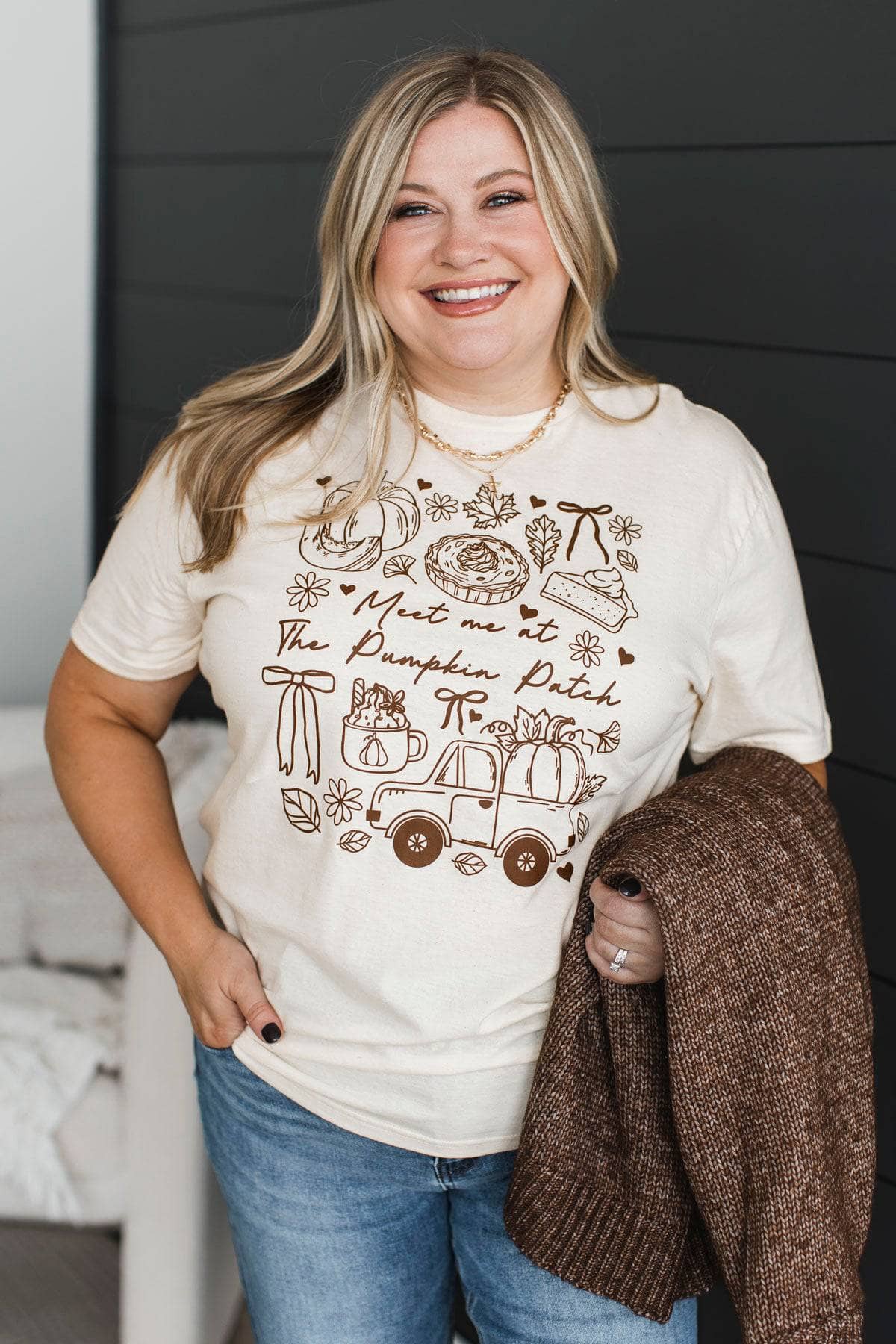 "Meet Me At The Pumpkin Patch" Speckled Graphic Tee- Cream