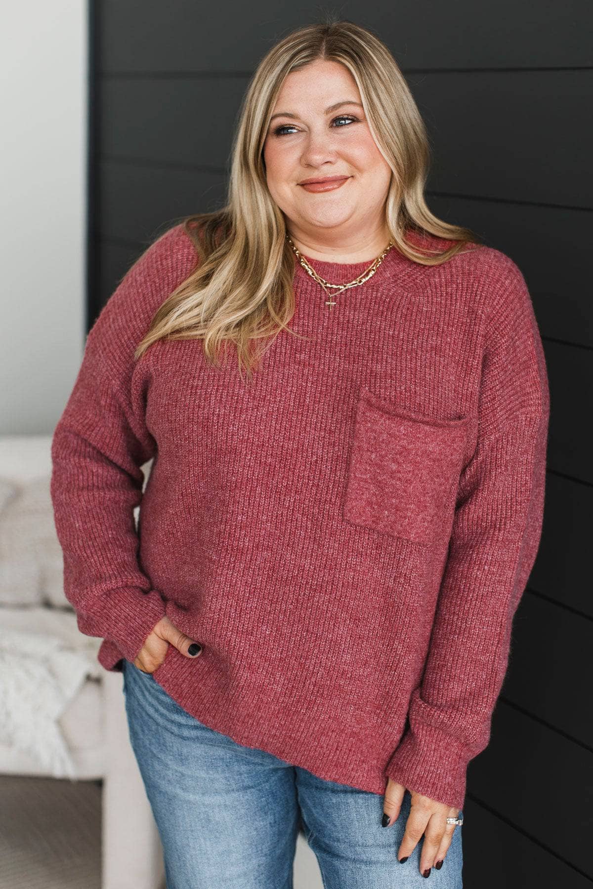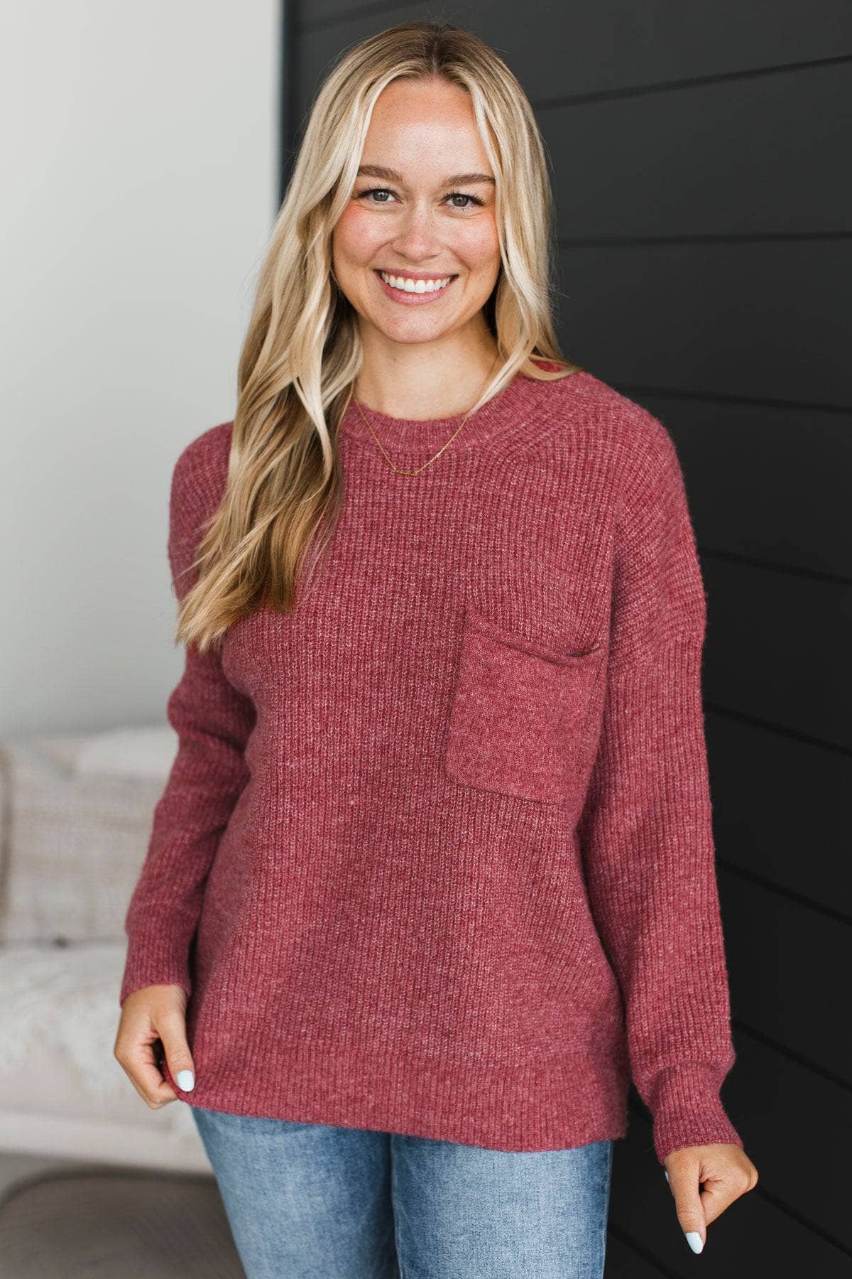 Two Places At Once Knit Sweater- Dark Rose