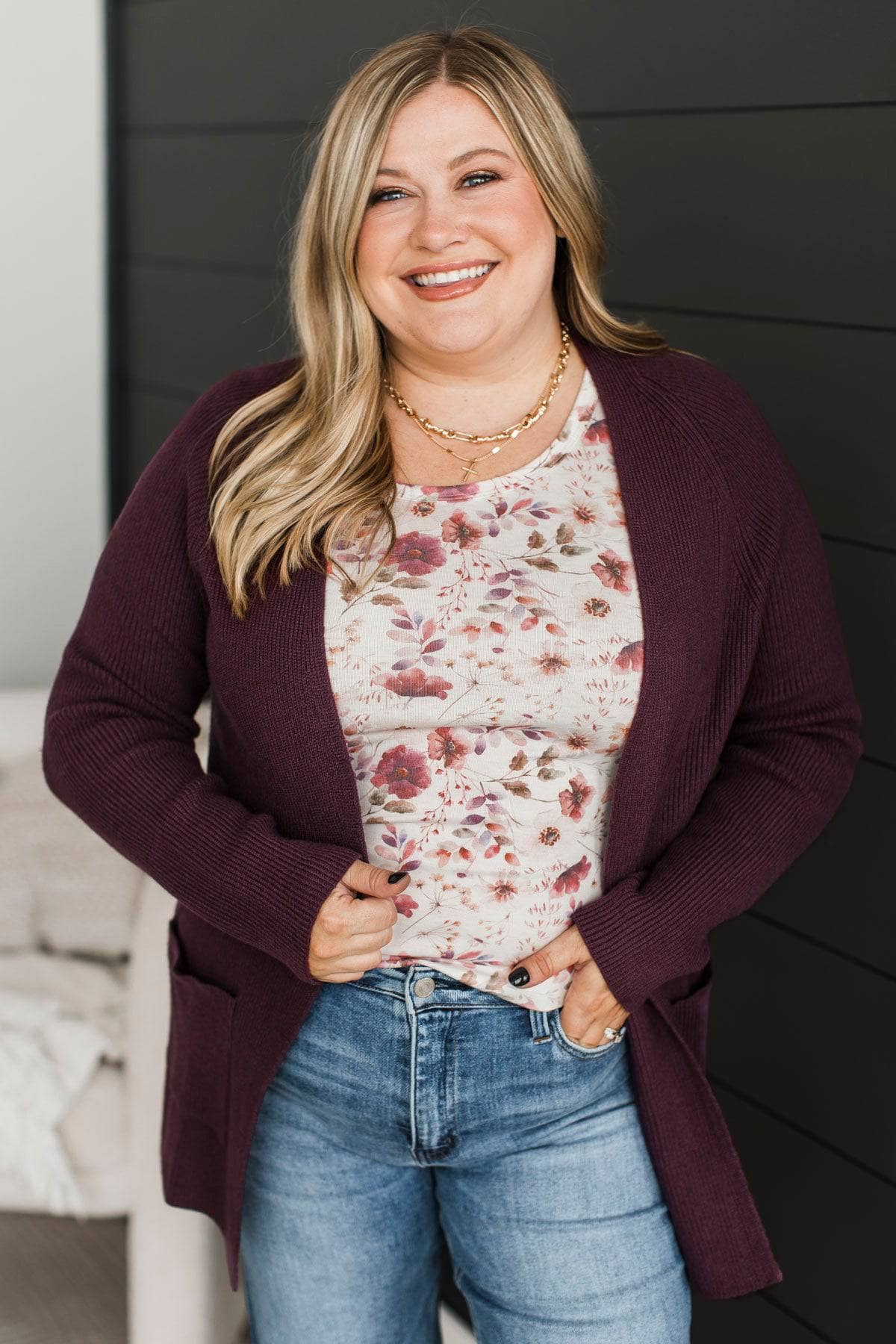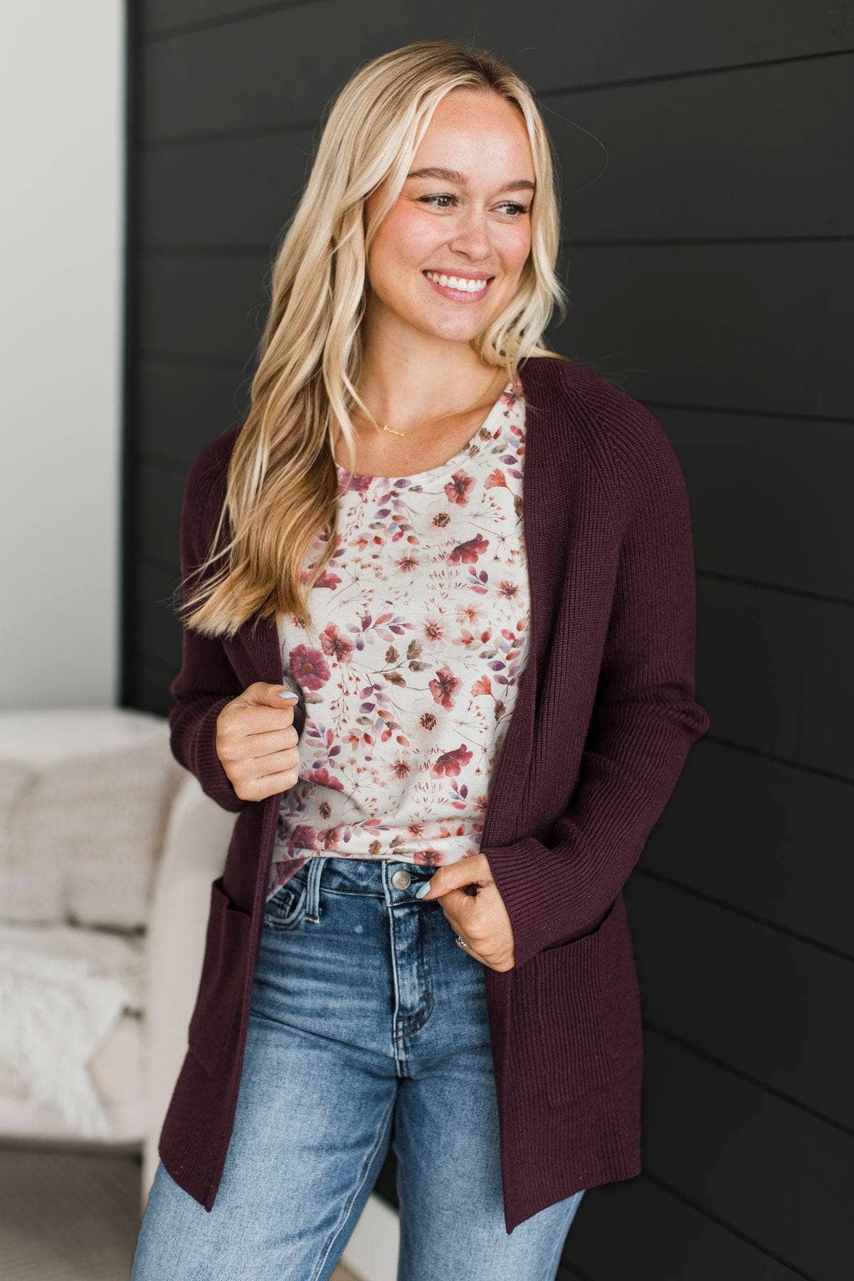 Embrace Today Open Front Knit Cardigan- Dark Plum