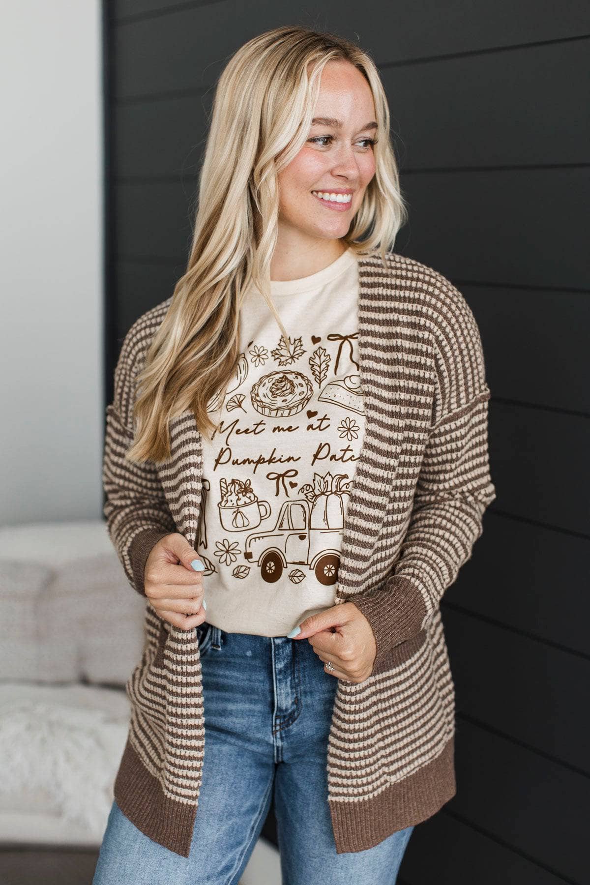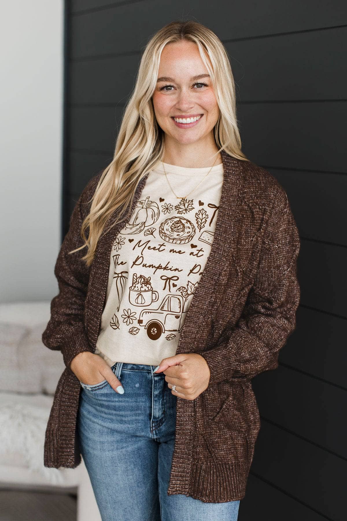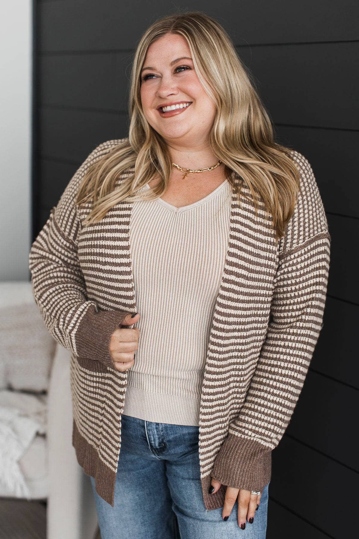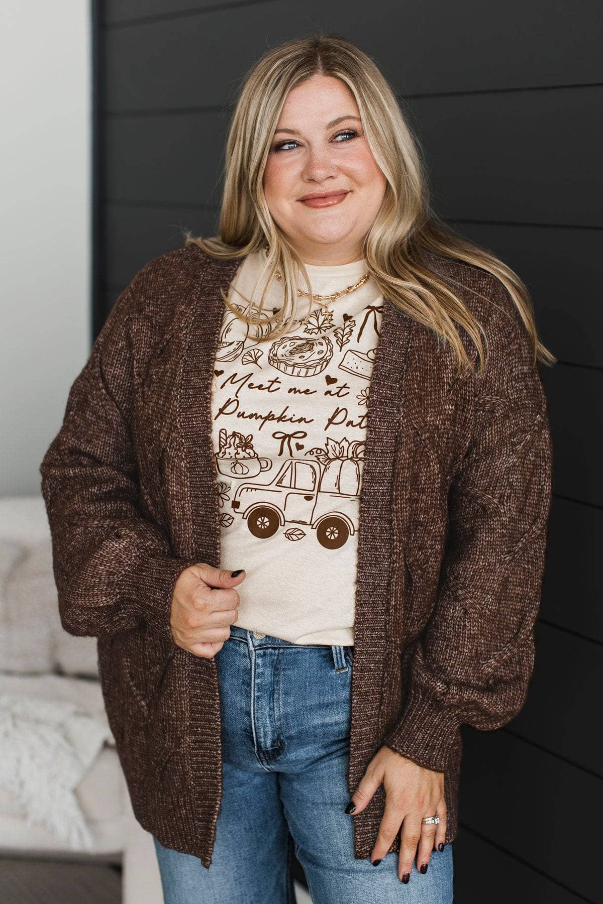 Welcoming Memories Waffle Knit Cardigan- Dark Mocha