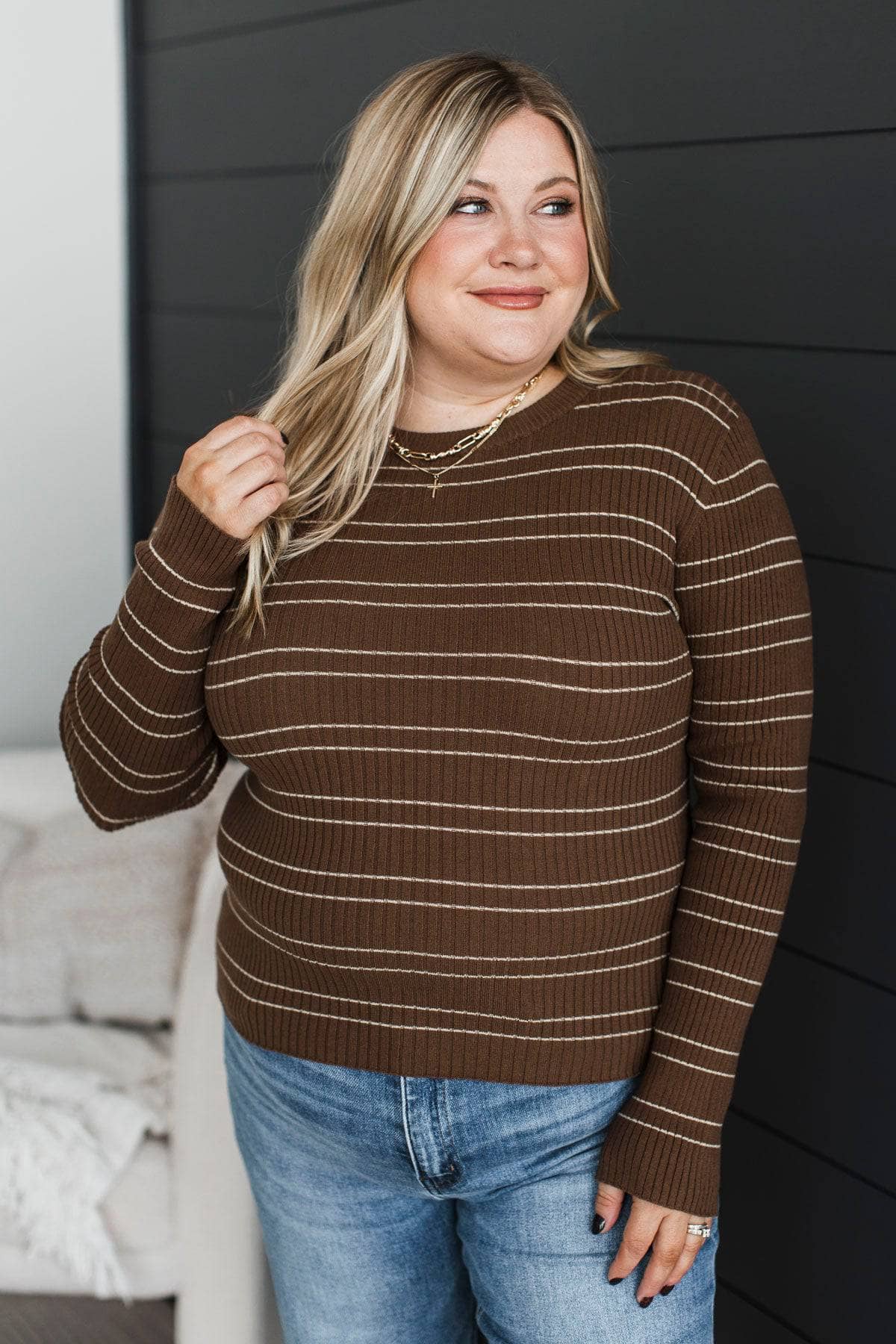 Significant Allure Striped Lightweight Sweater- Brown