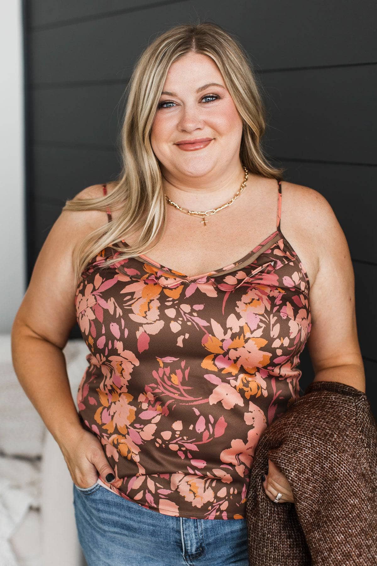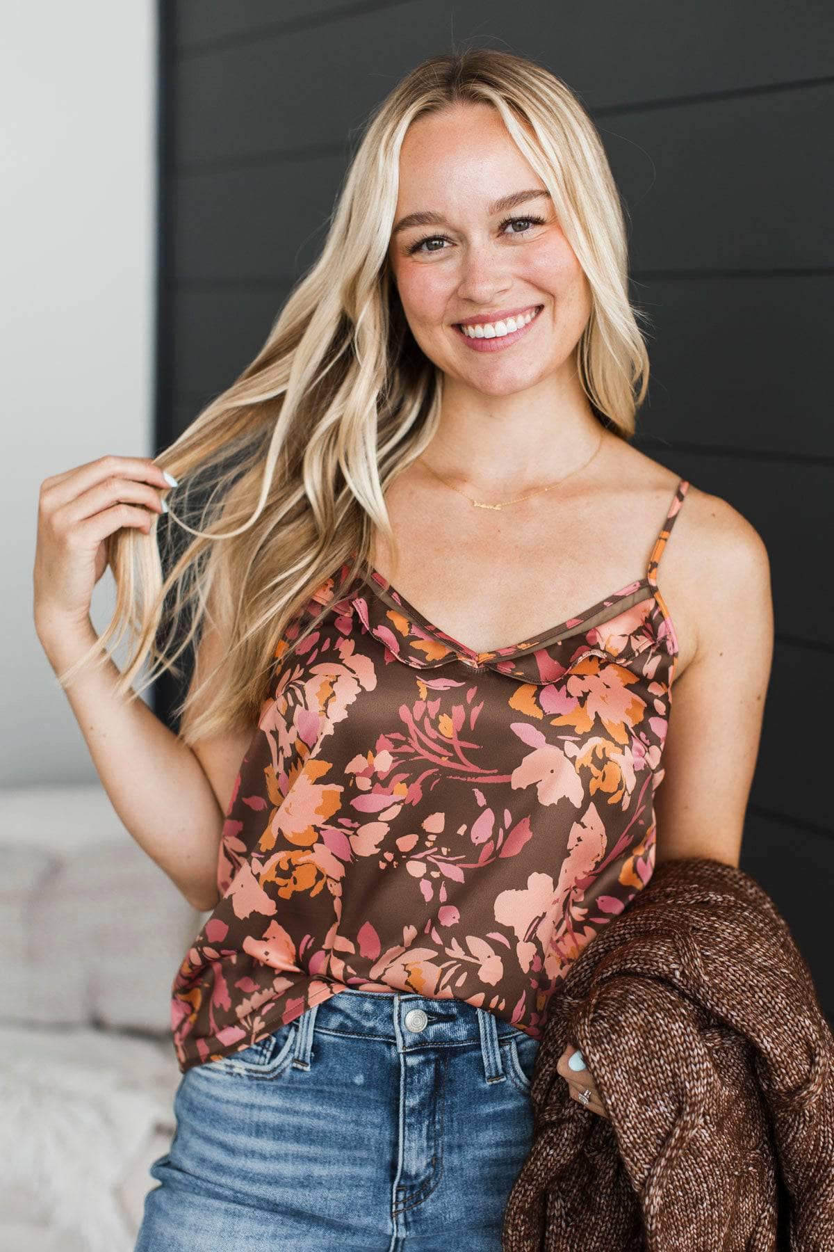 Stayed For You Floral Tank Top- Brown
