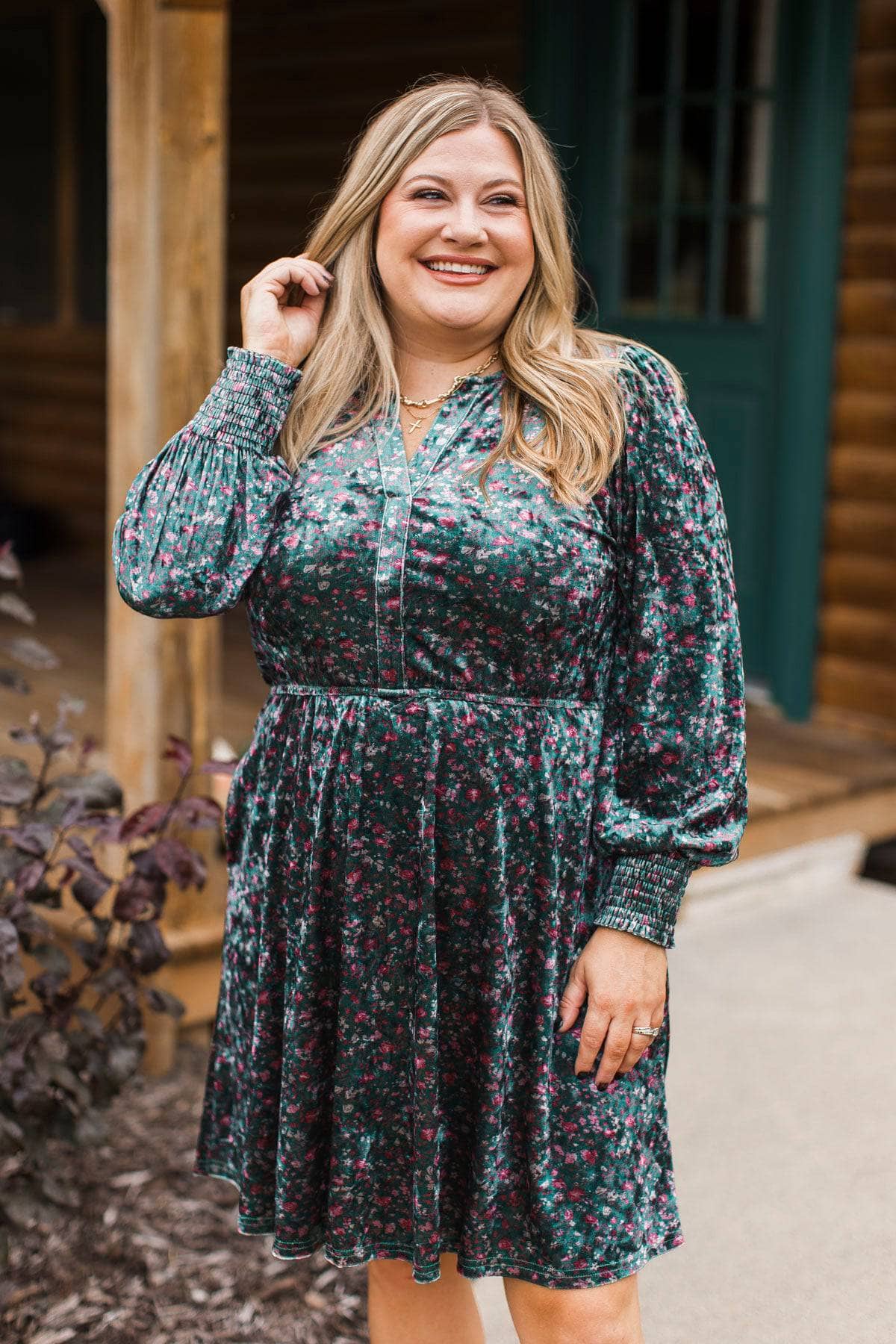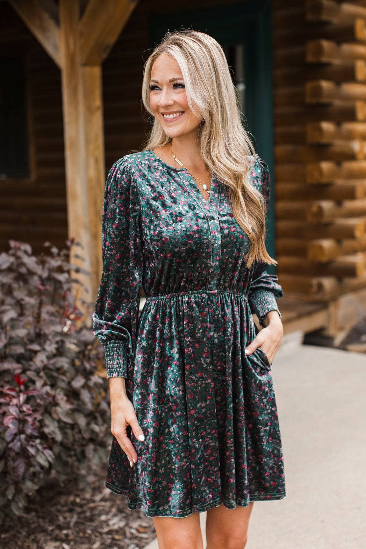 Darling Romance Floral Velvet Dress- Dark Green