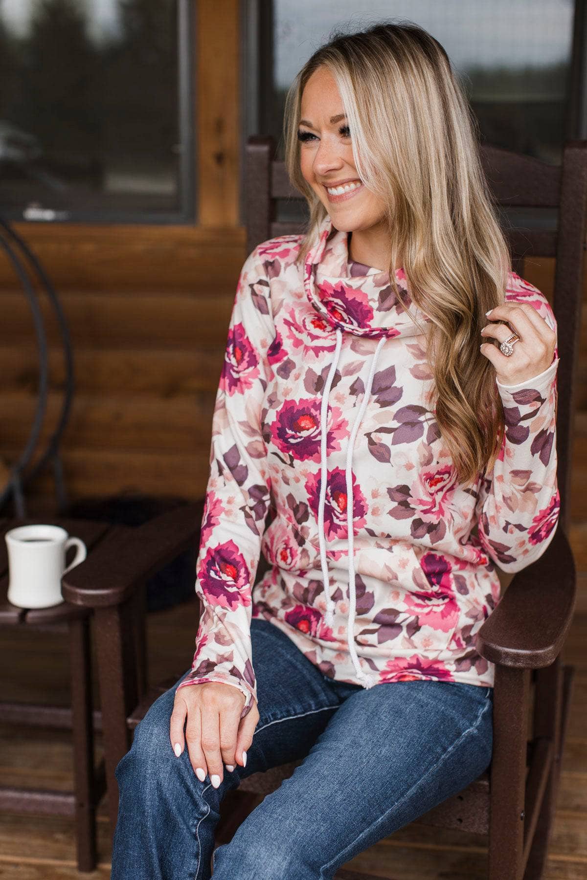 Big Feelings Funnel Neck Floral Pullover- Ivory & Pink