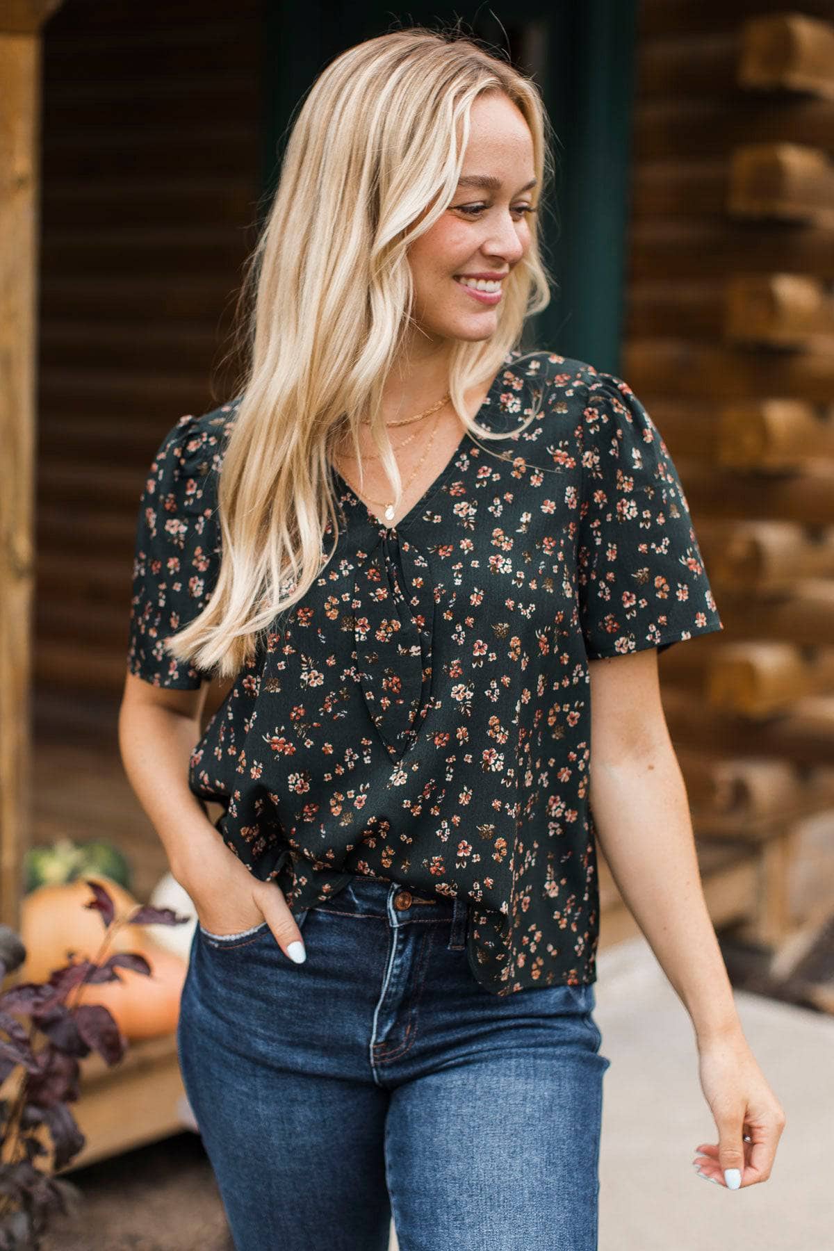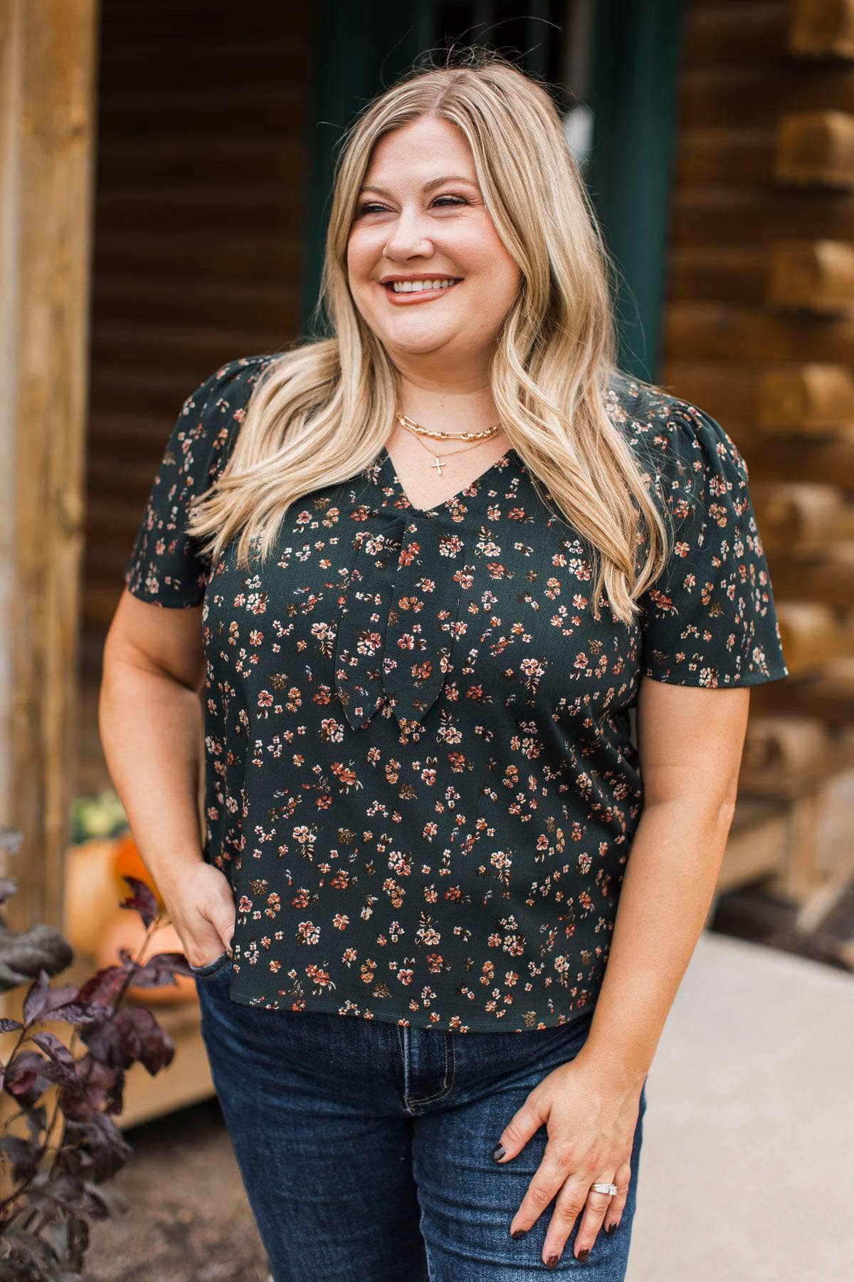 She Is Beauty Floral Blouse- Dark Teal Green