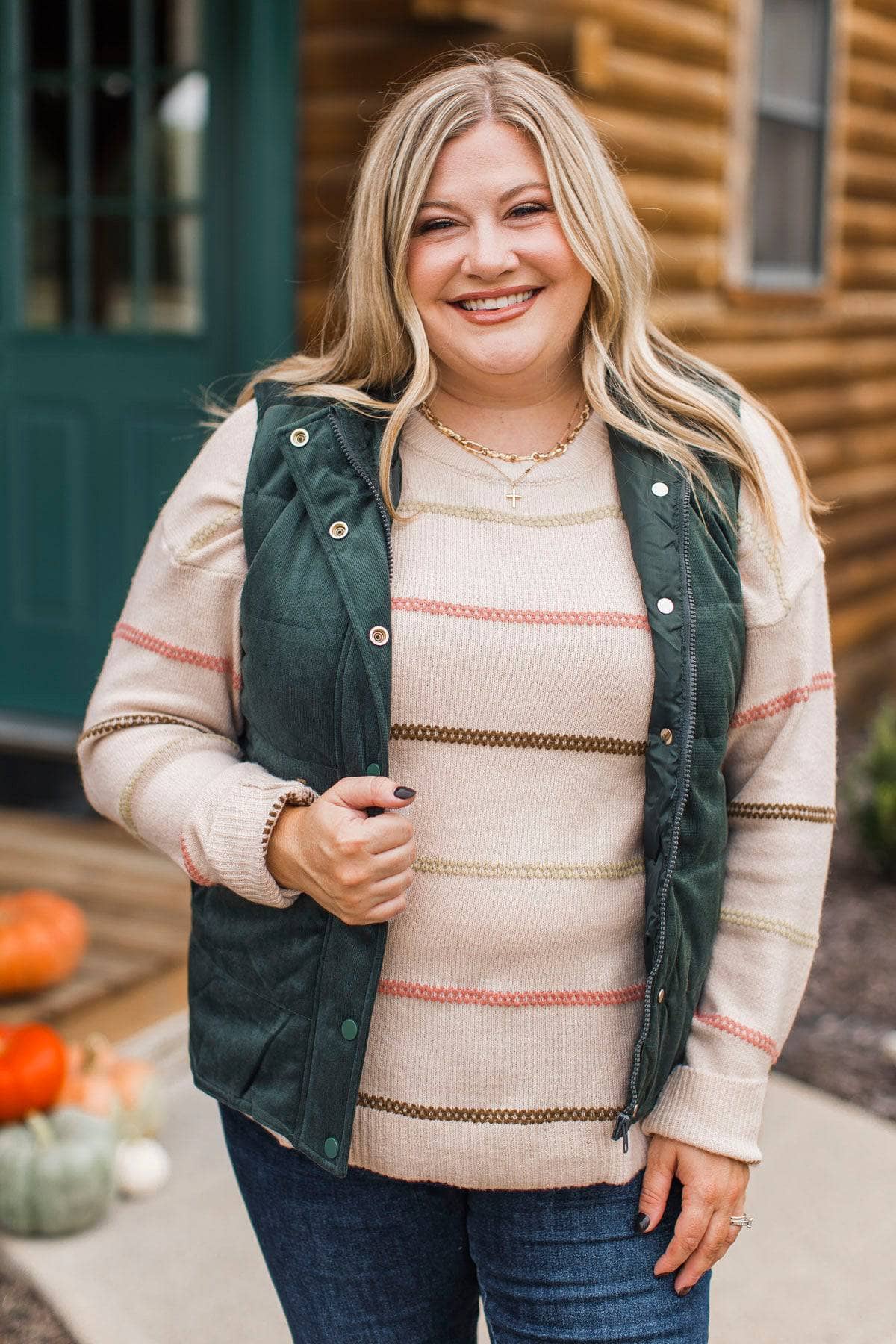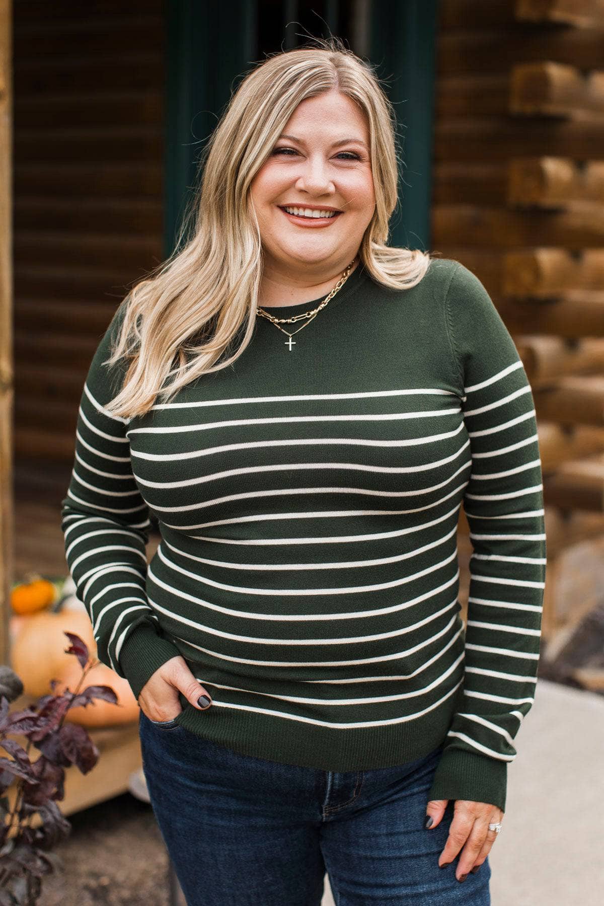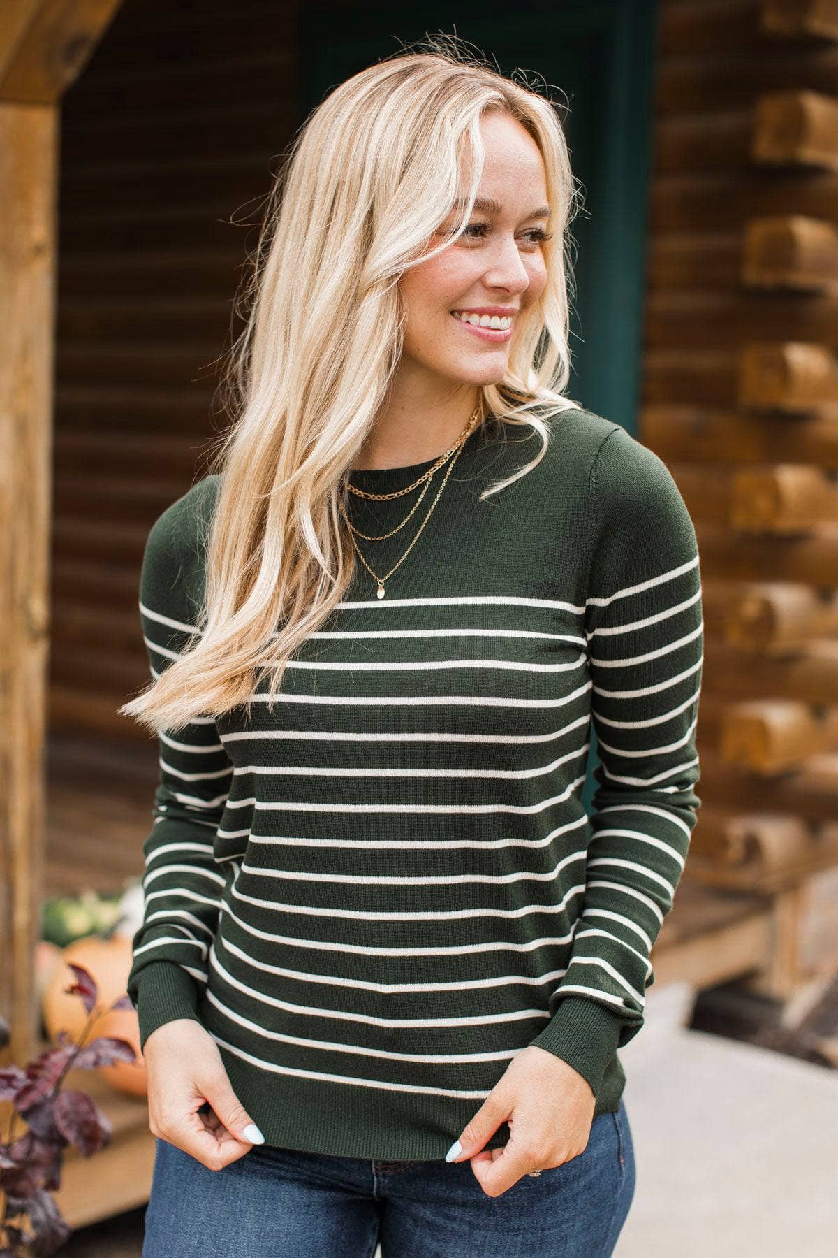 Love Is Calling Striped Sweater- Forest Green