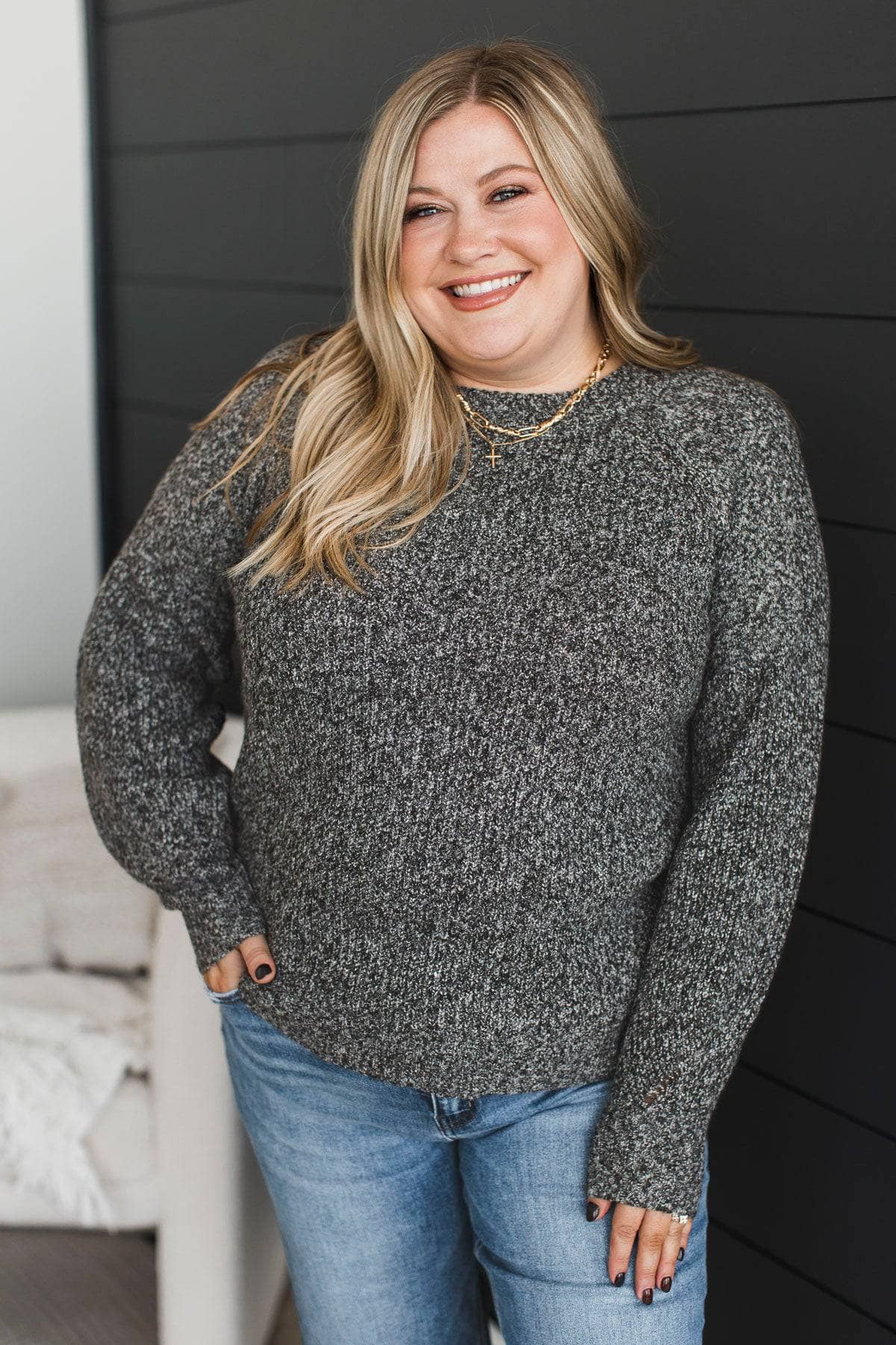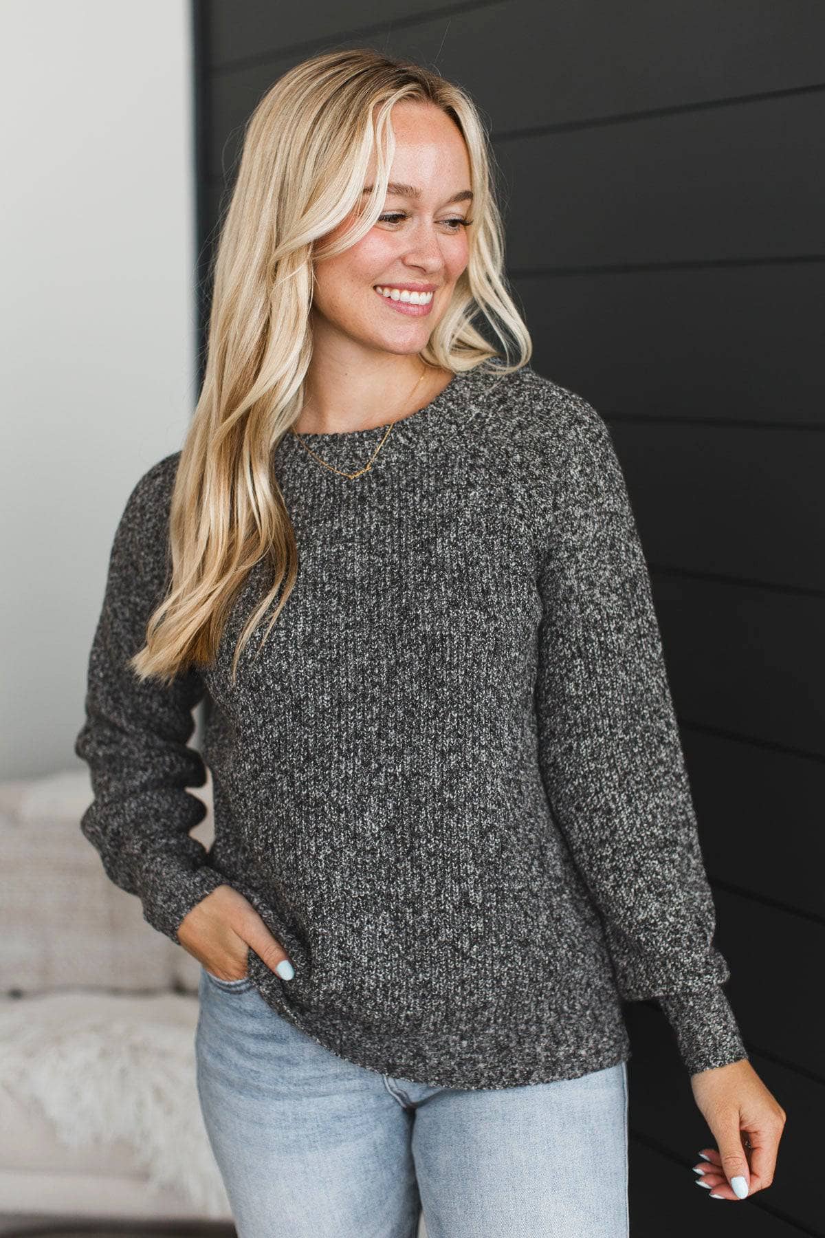 Limitless Mindset Two-Tone Knit Sweater- Charcoal