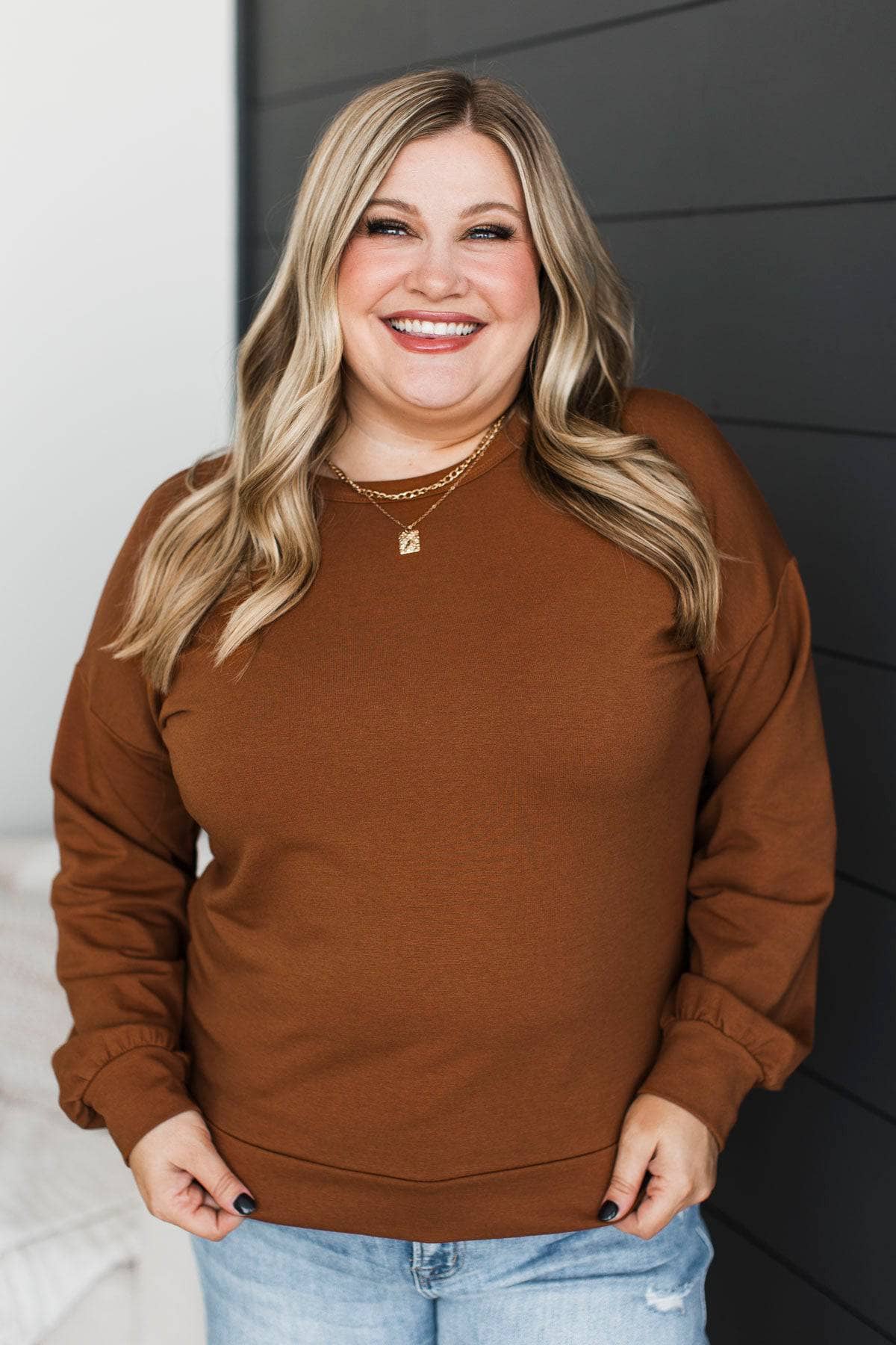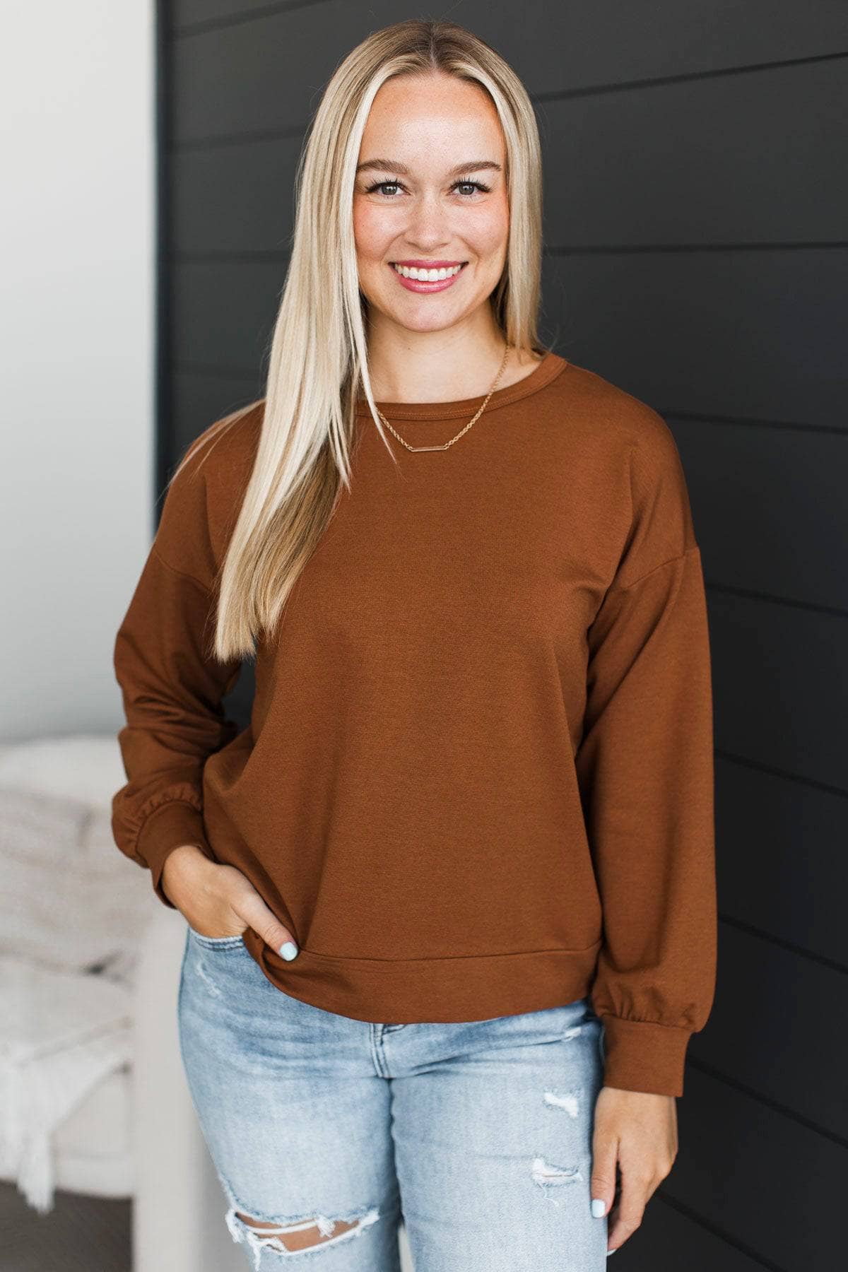Working To Be Exceptional Pullover Top- Caramel