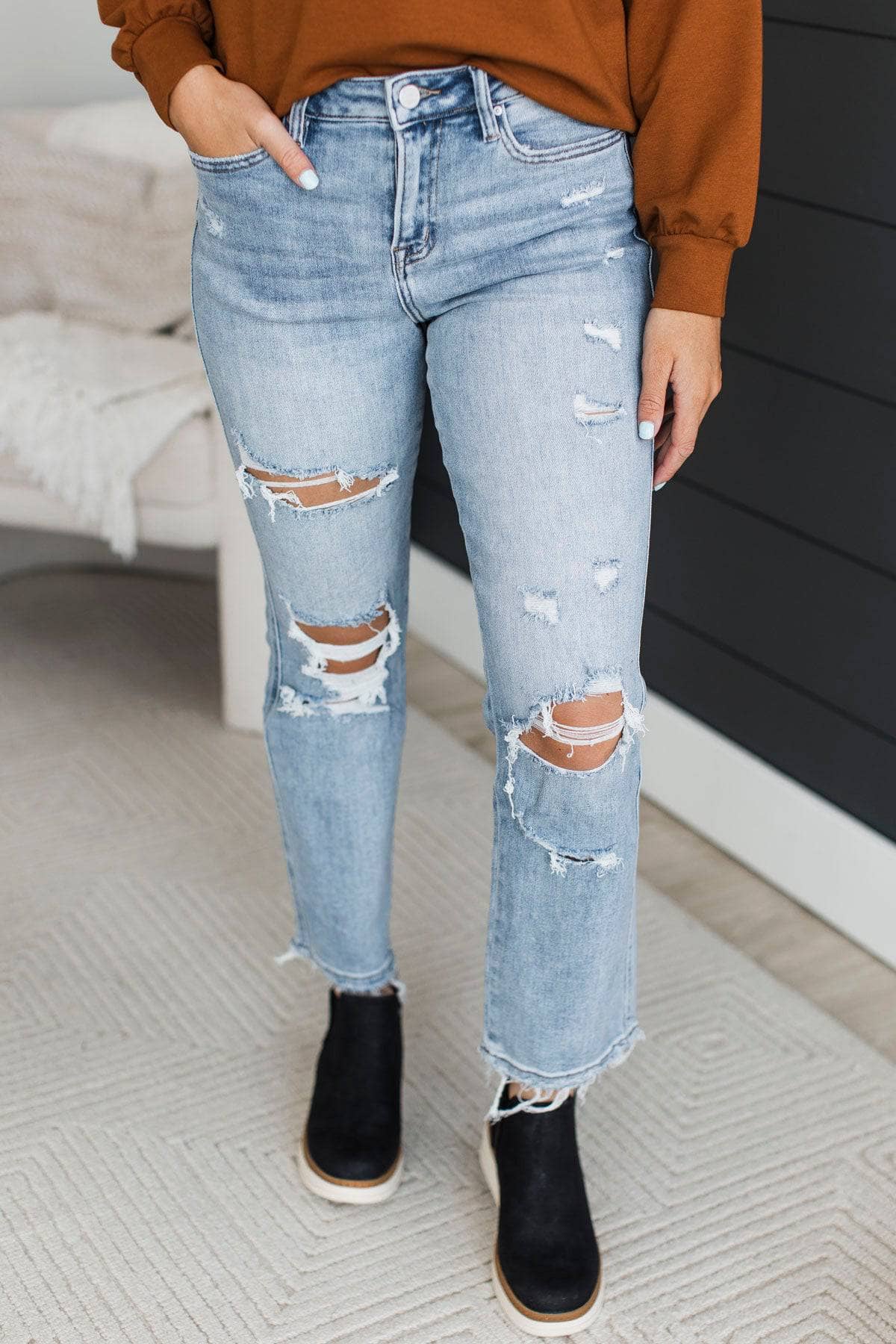 Mica Denim Straight Crop Jeans- Geovana Wash