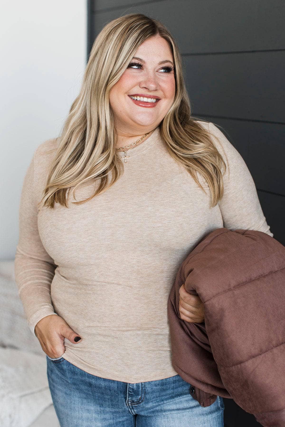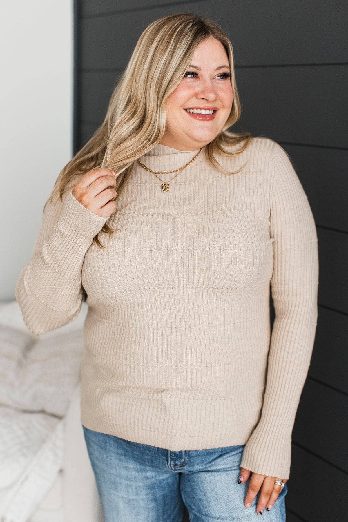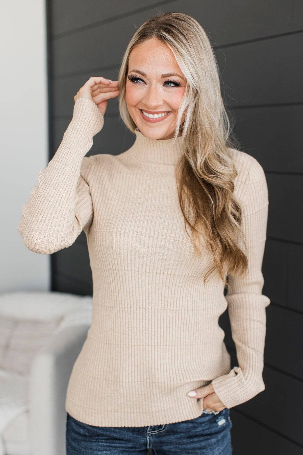 More To Discover Mock Neck Ribbed Sweater- Almond