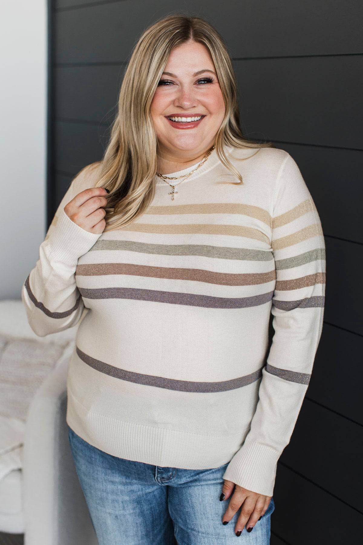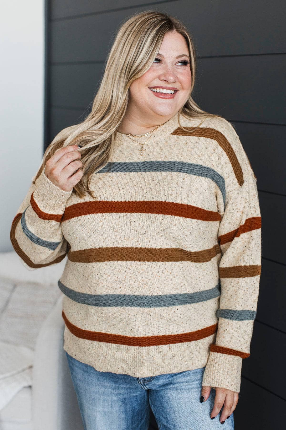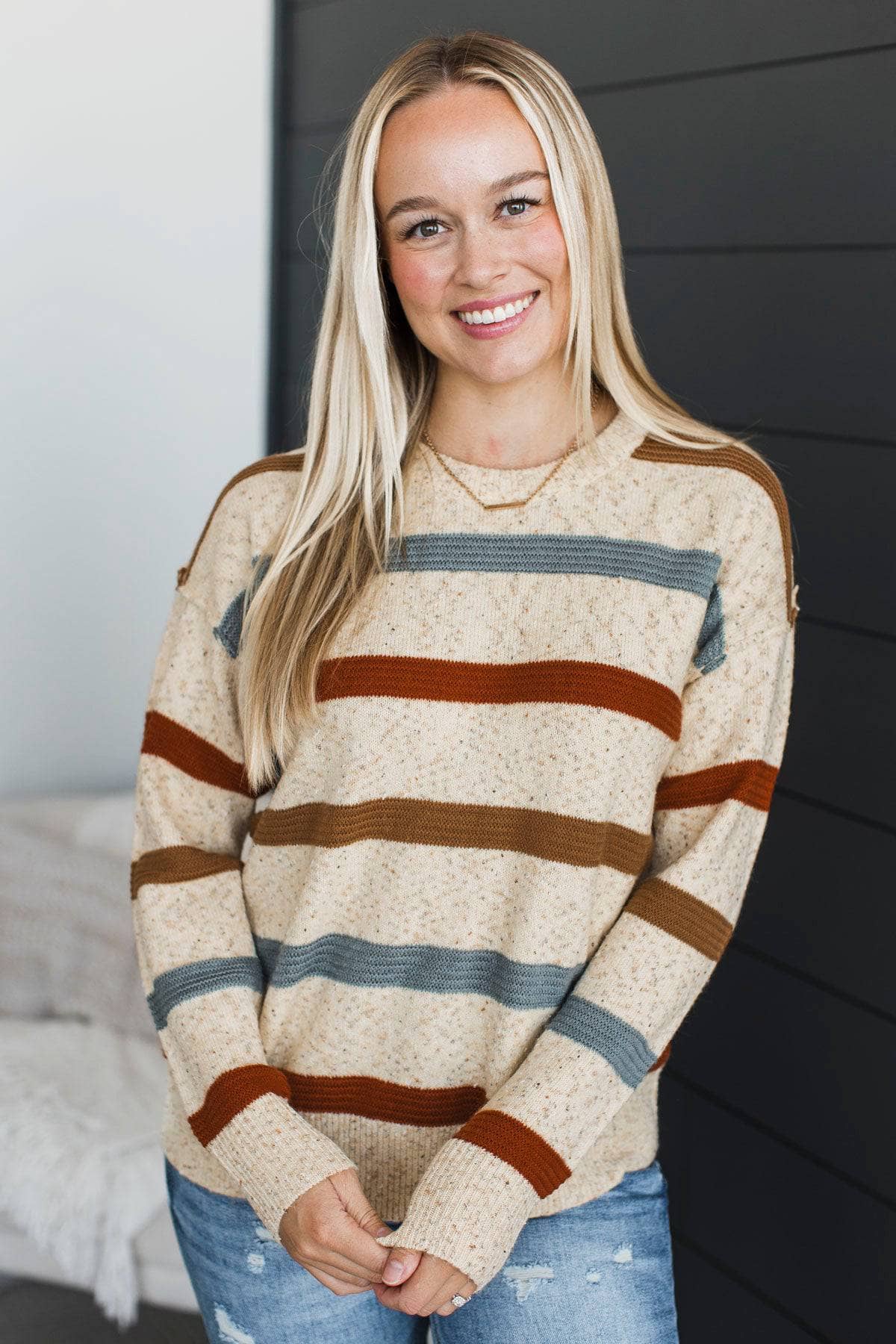 Loving Easy Sprinkled Knit Striped Sweater- Beige, Rust, & Slate